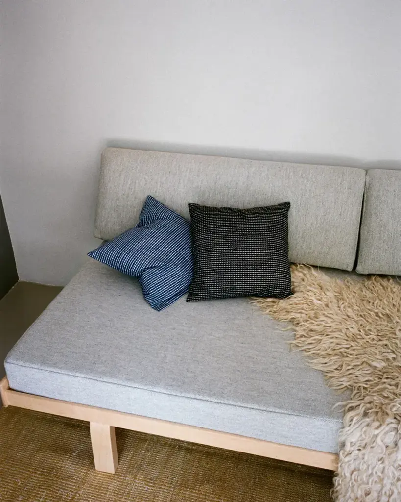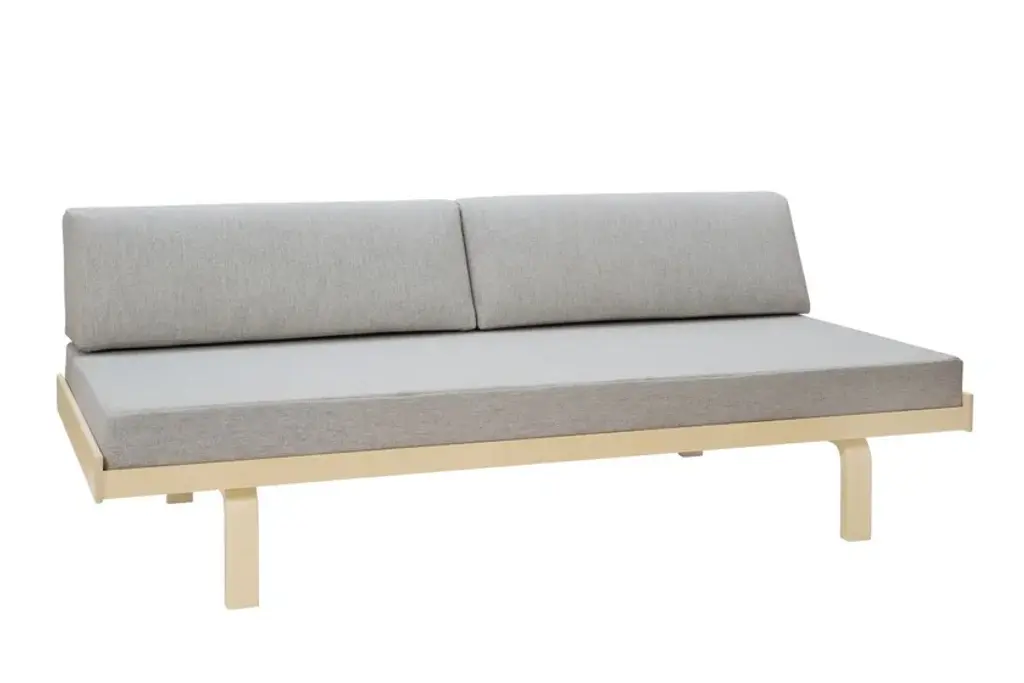 Day Bed 710 models the strength, simplicity, and versatility of Aalto’s L-leg family. The bentwood legs and slatted frame combine to provide a sturdy, lightweight structure that can be moved as necessary. Made of solid birch, the Day Bed 710 invites both sitting and reclining. Beyond the mattress, the day bed can also be accessorised with cushions; both items come with removable covers and are available in a variety of colours and textiles.The frame of Day Bed 710 is made of natural lacquered birch. It can be upholstered in any number of fabrics or leather.Legs and frame: birch, clear lacquerSeat and back cushions - fabric upholstery: kvadrat hallingdal 65 / 110 , kvadrat hallingdal 65 / 750