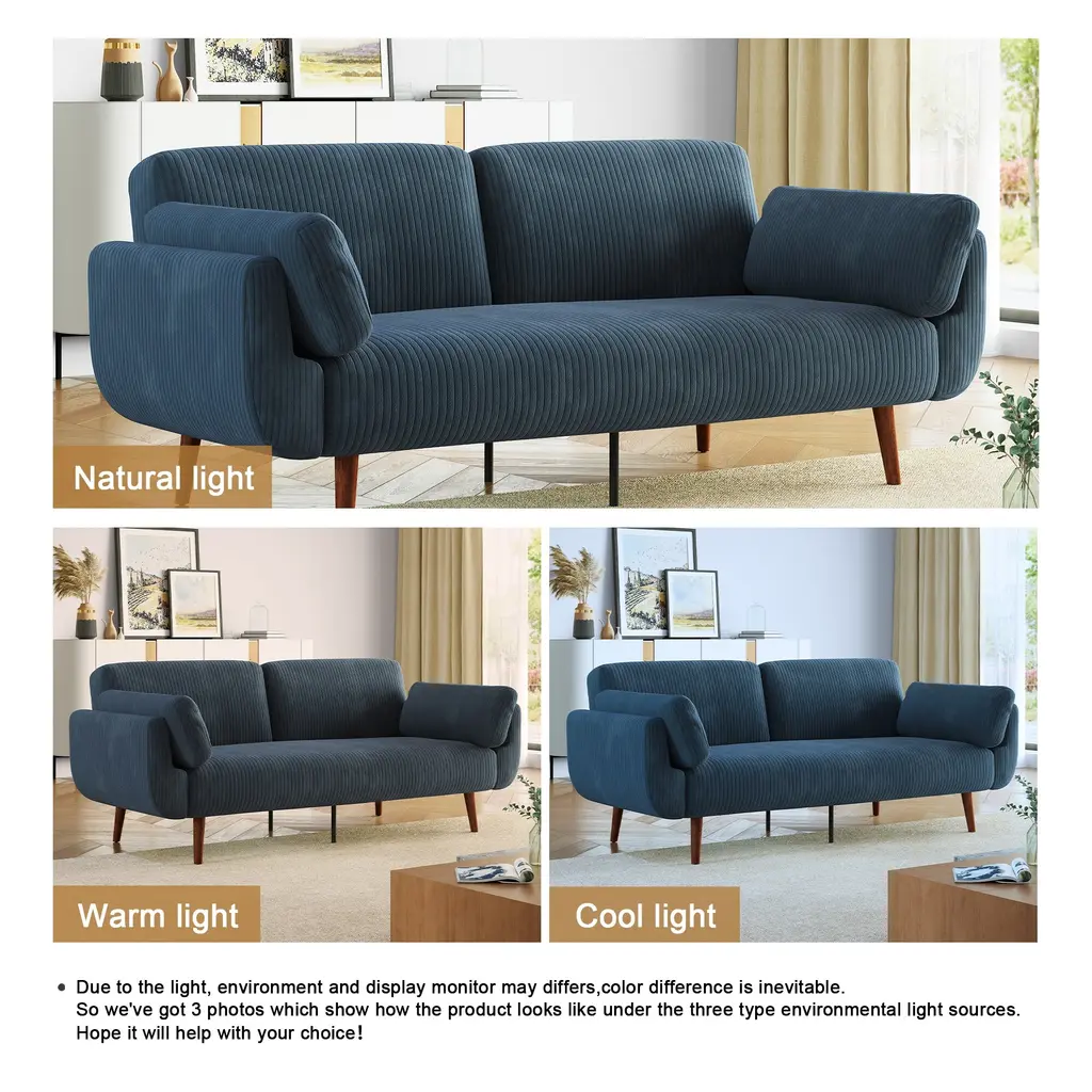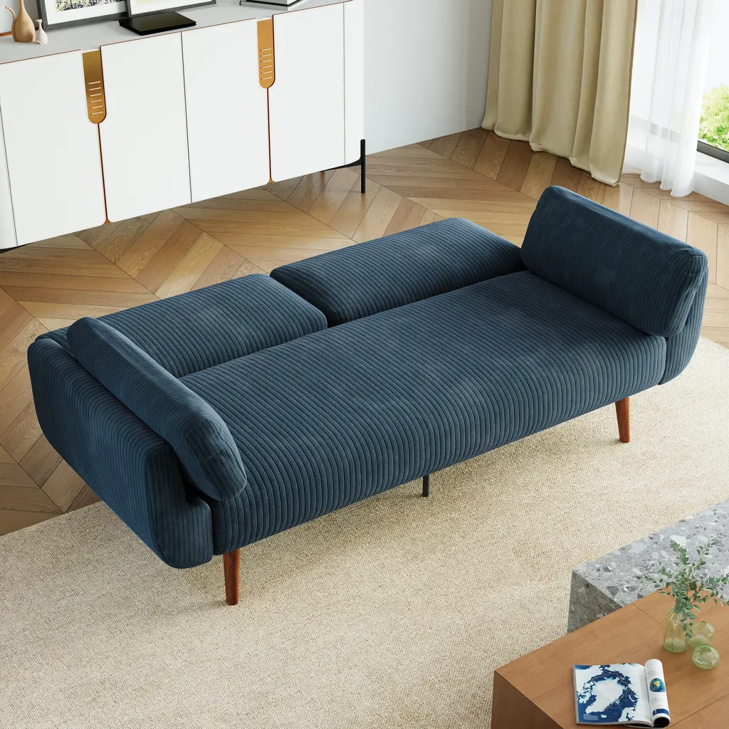 73.3" W Flared Arm Convertible Sleeper Sofa Modern Corduroy Loveseat - Navy
