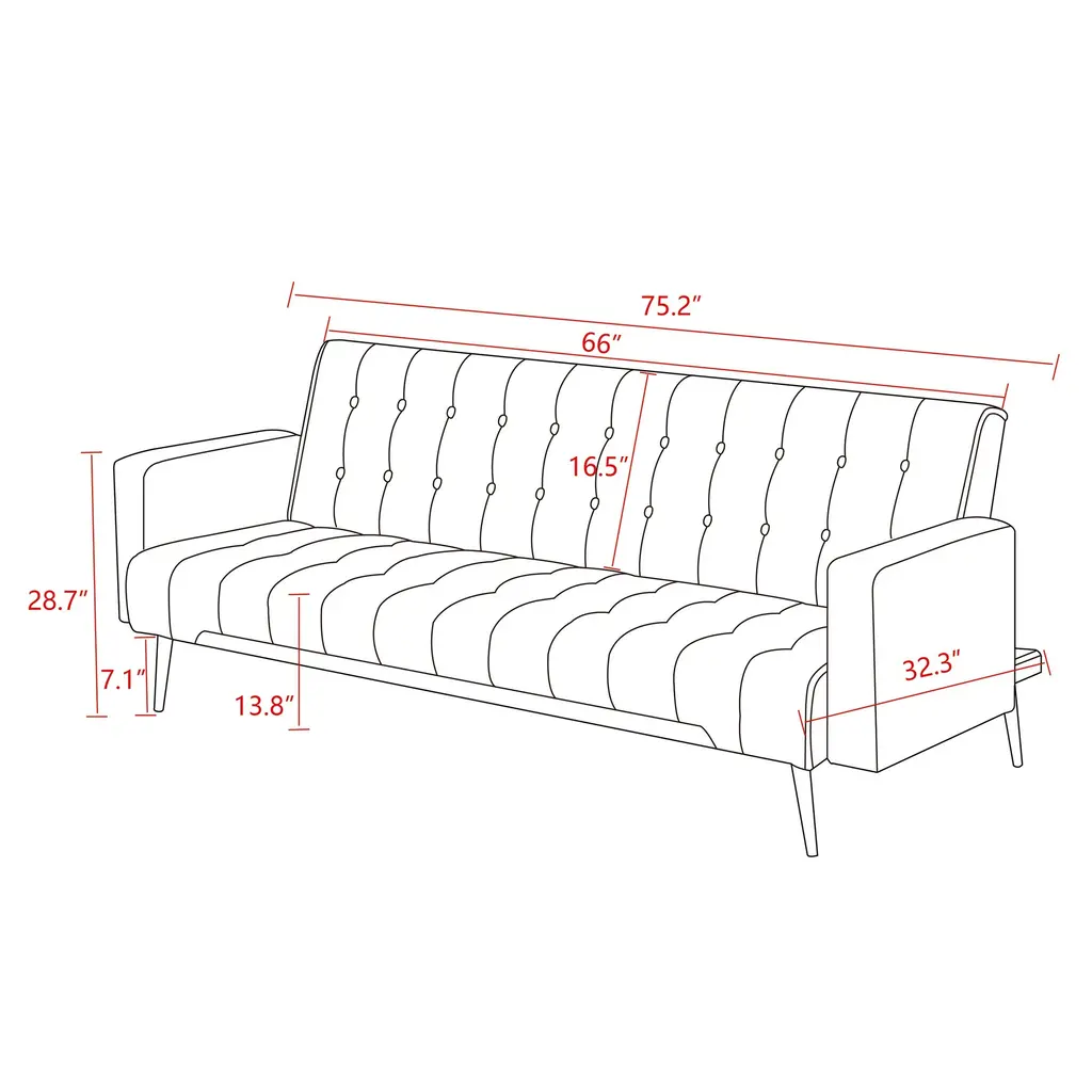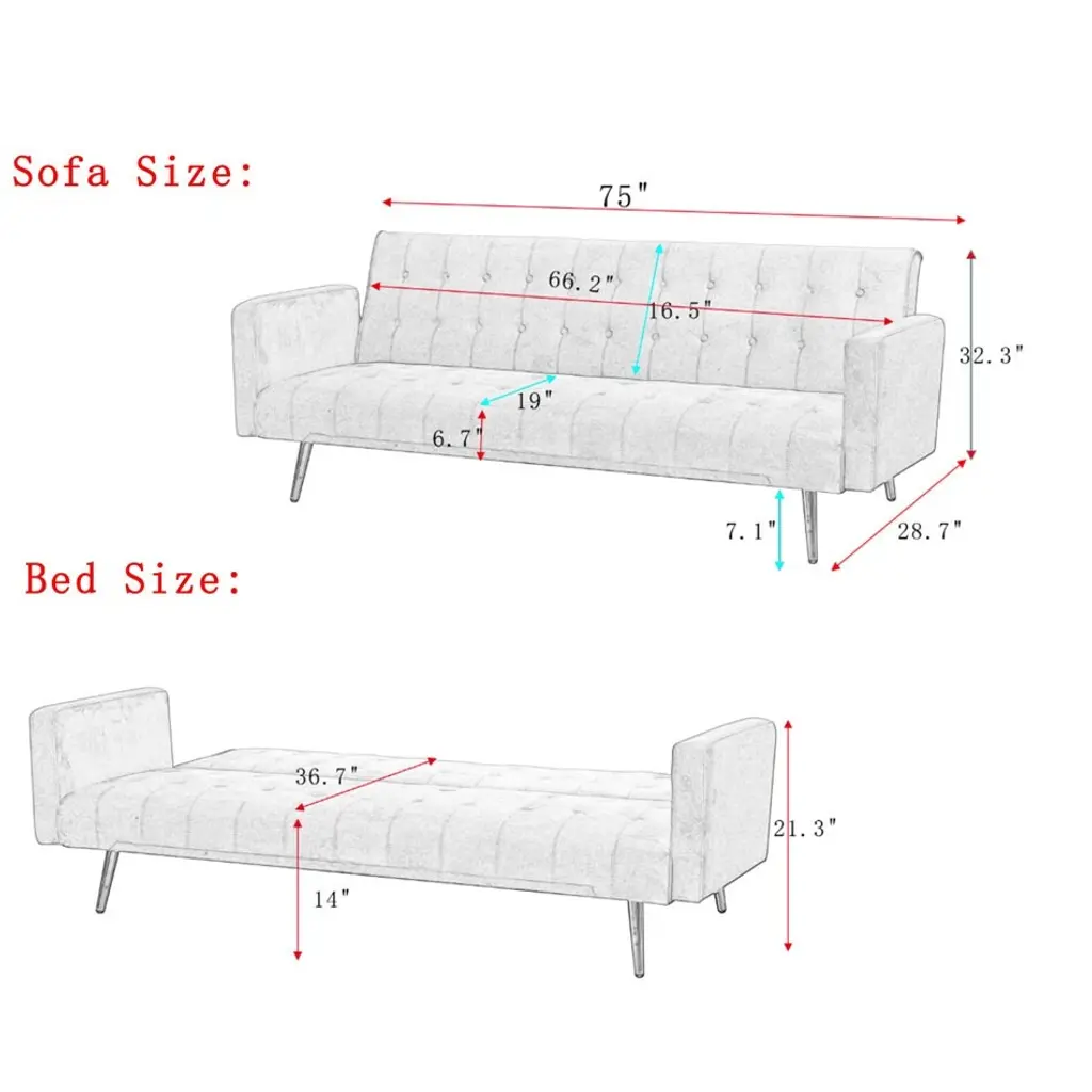 The classic and modern lines with mid-century tufting are inviting and welcoming to all. The sofa bed is made of a high-density thick sponge and solid wooden frame, providing you and your guests with full comfort and support. The split design allows it to tilt independently, allowing you to sit, rest or even sleep! When you change this comfortable sofa into a bed, you can easily change the living room or study into a guest room. In addition, you can place it in the studio as an office sofa for conversation business. It is ideal for apartments, condos, or rooms with limited space.Features: