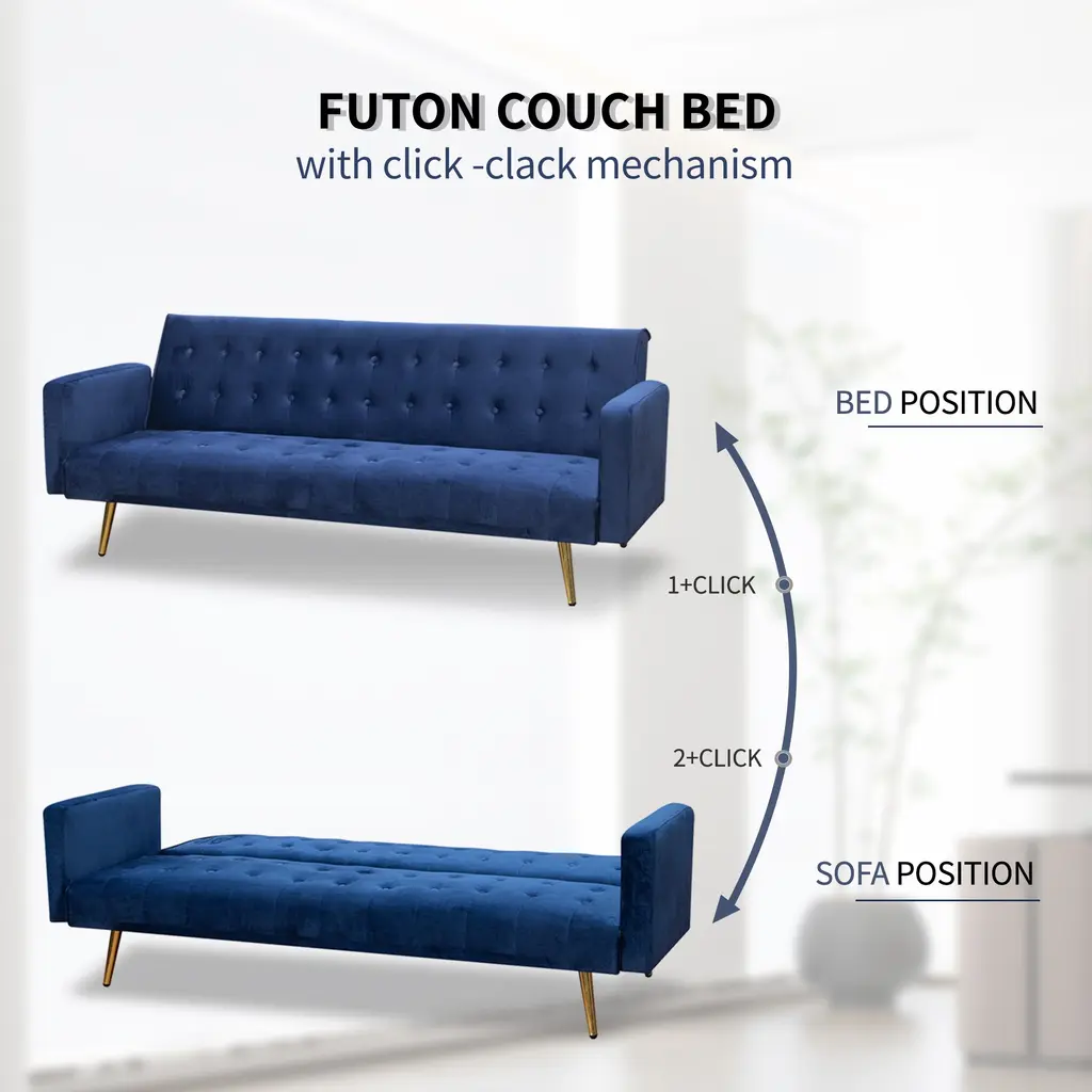 The classic and modern lines with mid-century tufting are inviting and welcoming to all. The sofa bed is made of a high-density thick sponge and solid wooden frame, providing you and your guests with full comfort and support. The split design allows it to tilt independently, allowing you to sit, rest or even sleep! When you change this comfortable sofa into a bed, you can easily change the living room or study into a guest room. In addition, you can place it in the studio as an office sofa for conversation business. It is ideal for apartments, condos, or rooms with limited space.Features: