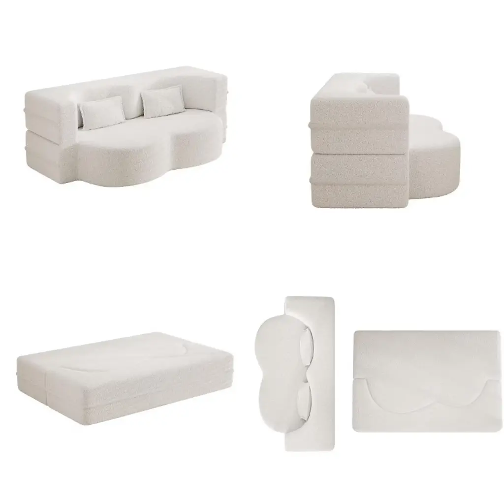 78" Beige Convertible 2 Seater Sofa Bed Couch Twin Bed Sleeper Sofa With 2 Pillows Teddy Fabric Foam-filled Floor Sofa Couch-cuddlewood