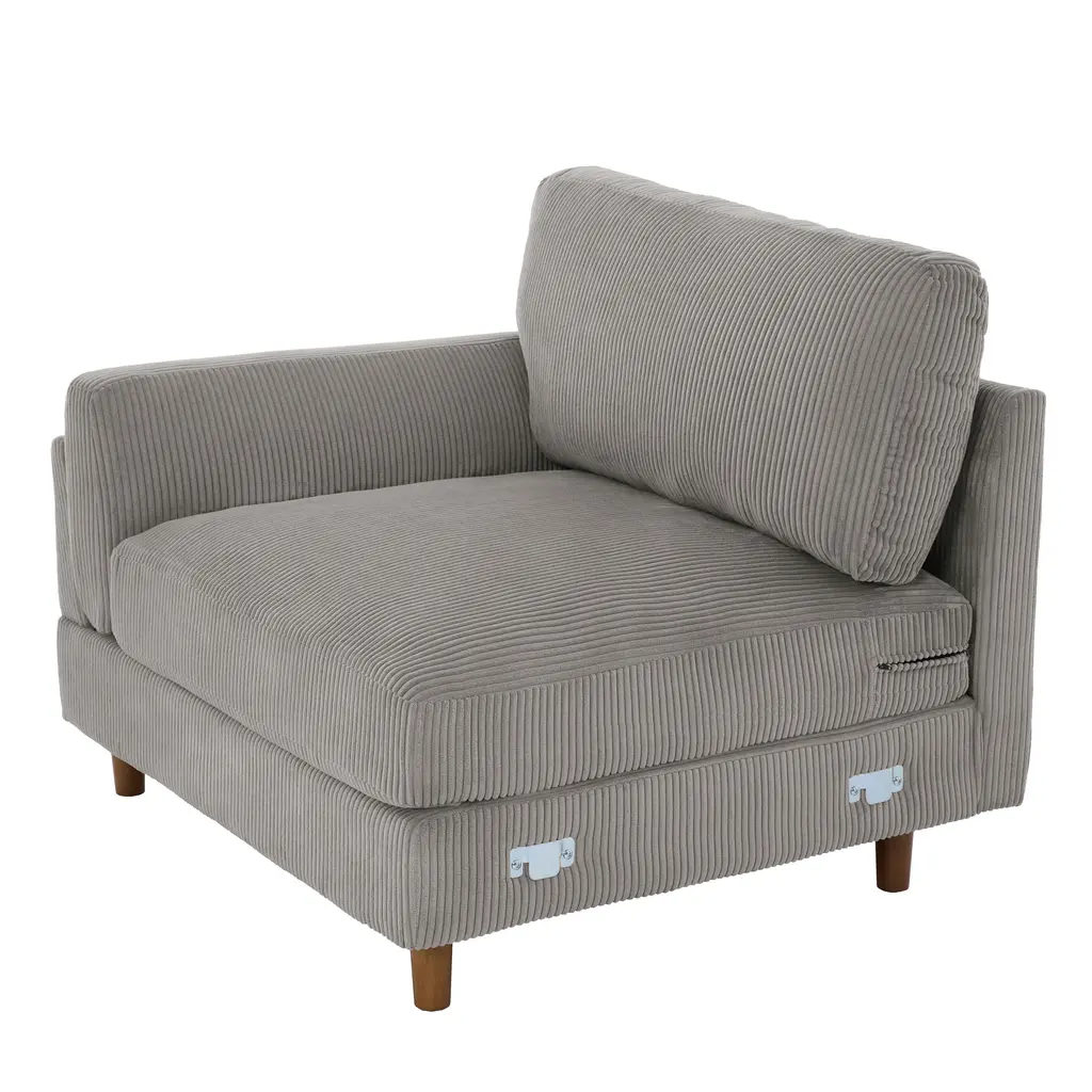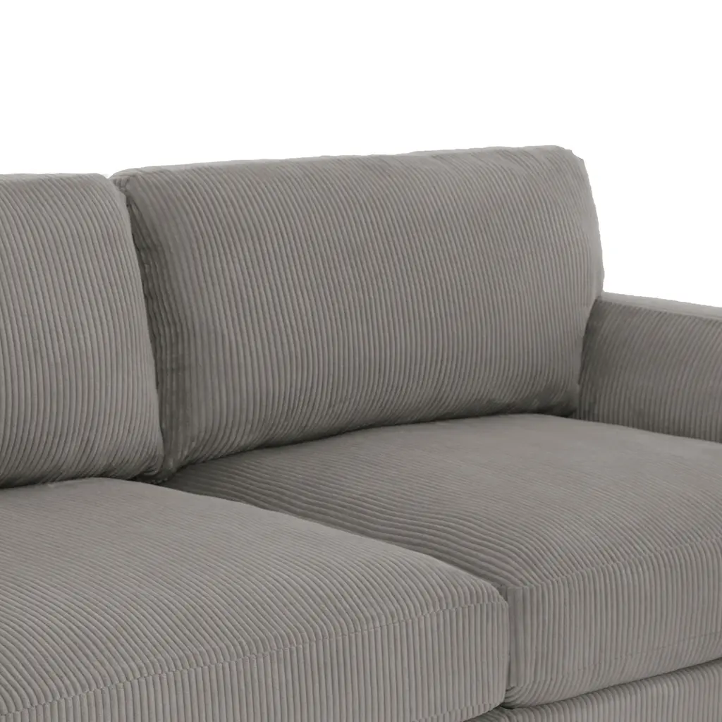 90" Corduroy Sectional Sofa Lounge Sleeper Sofa - Light Grey Set