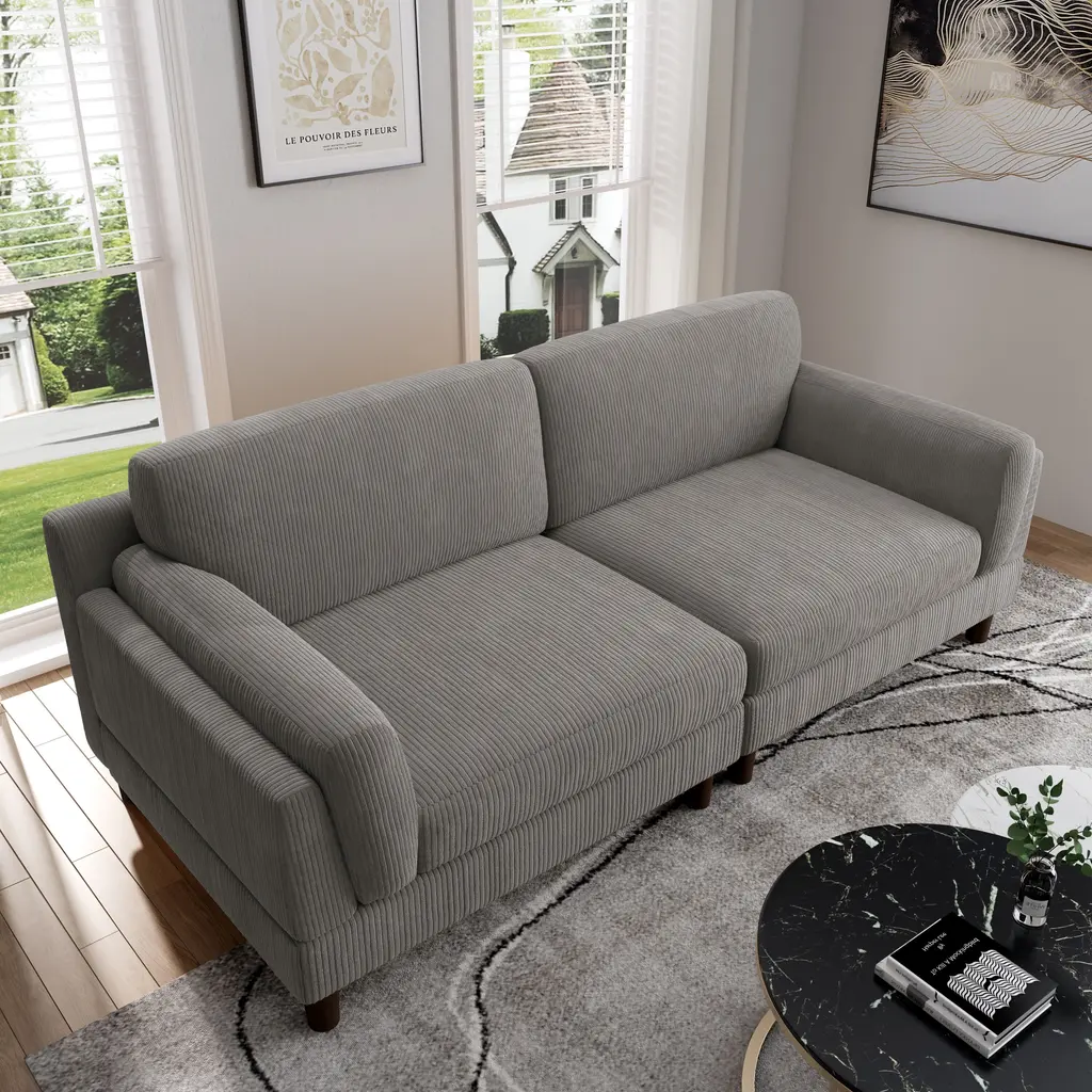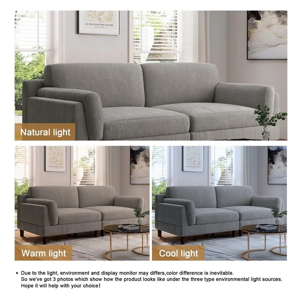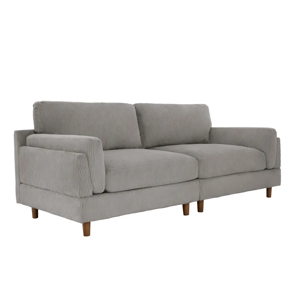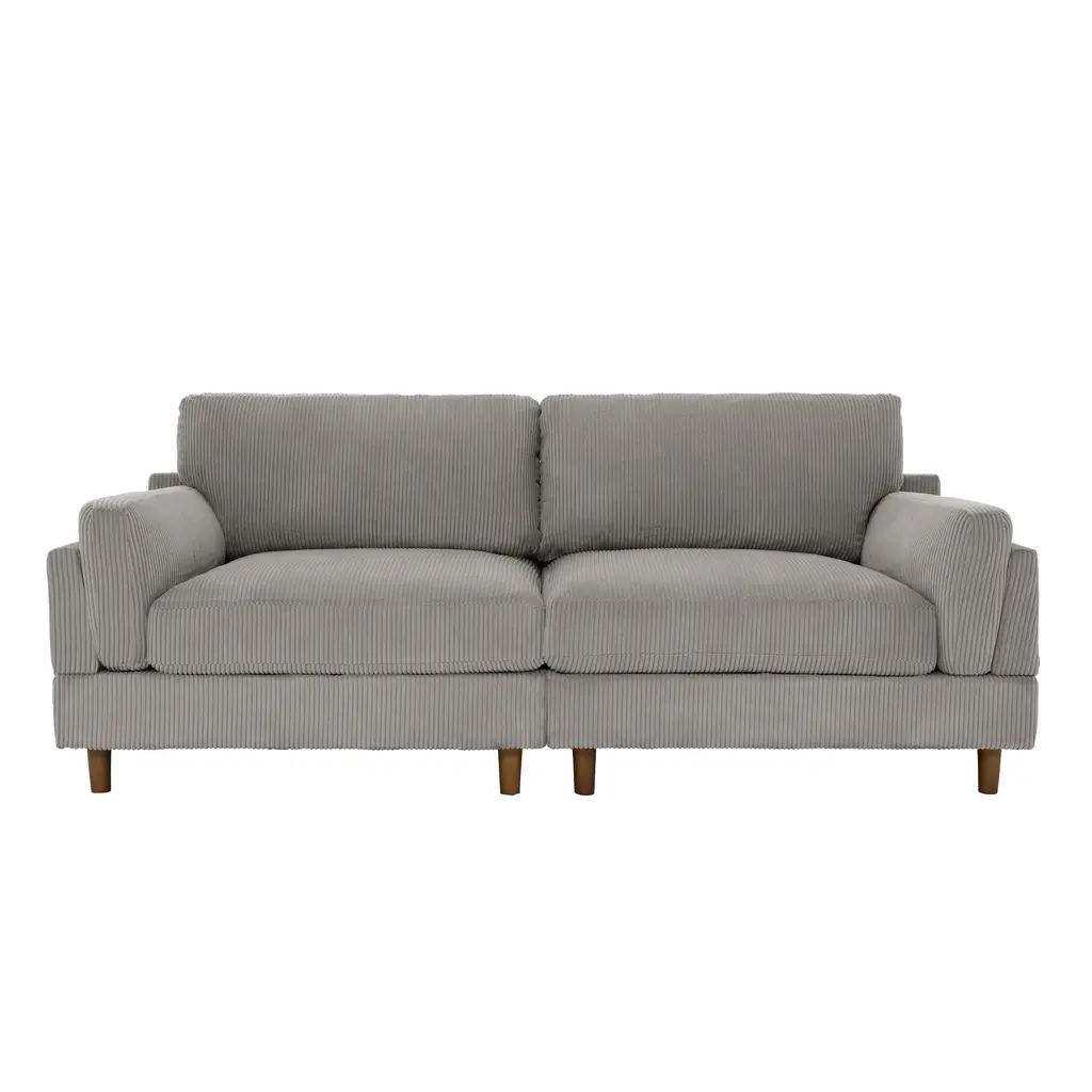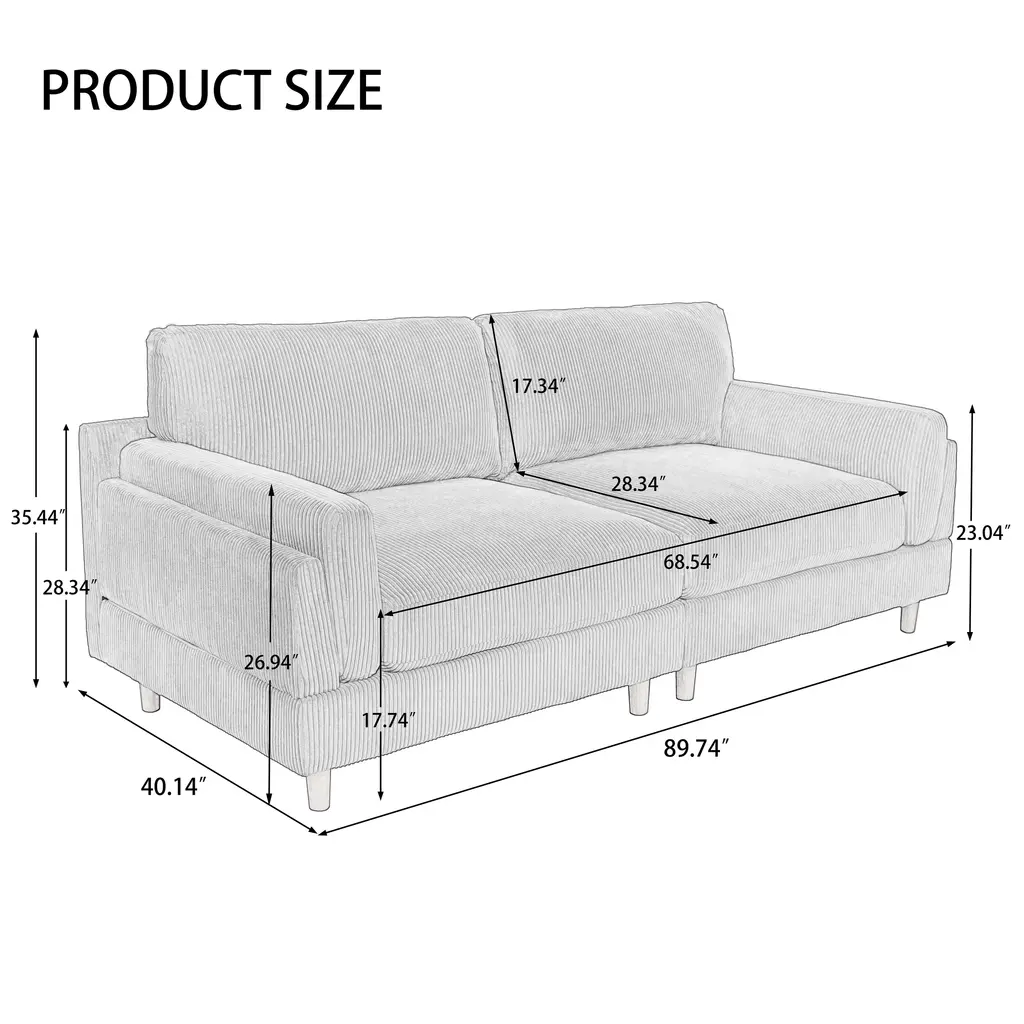 Make any space feel like home with the 90-inch loveseat. Classically rectangle-styled with modern arms and removable cushions, this 3 seater sofa adds a comfortable and functional touch to every living space. The upgraded corduroy fabric upholstery offers a versatile neutral color option that can easily be paired with existing furniture, while the solid wood construction and pillowed back cushions are durably designed to withstand the rigors of everyday use. Whether you're relaxing with a book or entertaining guests, this sofa offers both comfort and relaxation.Product information:Highlights: