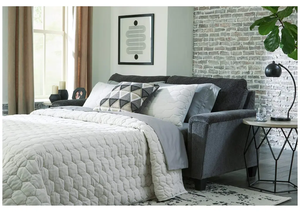If you’re looking for a smokin’ hot look priced to entice, you’re sure to find the space-conscious, budget-conscious Abinger sofa sleeper beautifully fits the bill. Covered in a smoke gray chenille upholstery loaded with plush texture, this less-is-more contemporary sofa sleeper is dressed to impress with angled side profiling and track armrests wrapped with a layer of pillowy softness for that little something extra. Crisp and clean, the 2-over-2 cushion styling adds up to one sensational look. Rest assured, the memory foam queen mattress comfortably accommodates overnight guests. Weight 191.000 lbs. (85.95kgs.)