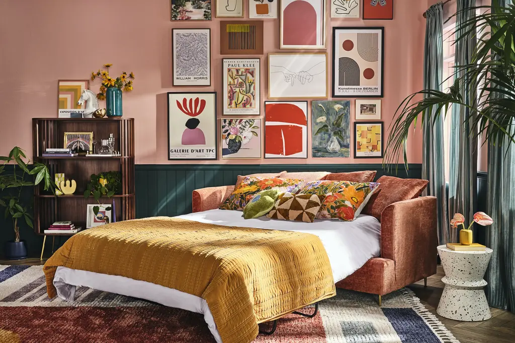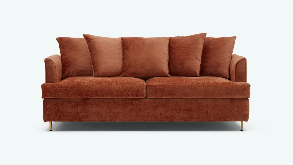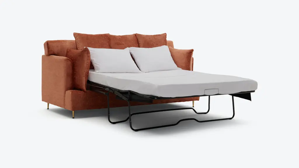 This adaptable sofa’s Mid-century profile and luxe modern details is a perfect choice for design enthusiasts of all persuasions. Plus, its concealed pull out bed helps your friends and family up their sleepover game!The Aime Sleeper Sofa shows off a versatile and easygoing style that looks right at home in any stylish setting. Its pillow topped back and golden legs brings a touch of glam, while the easy to use pull out bed provides your overnight guests a chic and cozy place to sleep. Details and product care +DimensionsMeasure for deliveryOverall81.5"w x 36"d x 37"hSeating72"w x 18"d x 20.5"hArm Height5" x 29.5"Open Sleeper81.5"W x 90"D x 21"HQueen Mattress60"W x 72.5"DLeg4"hCustomers love the Aime Sleeper Sofa
