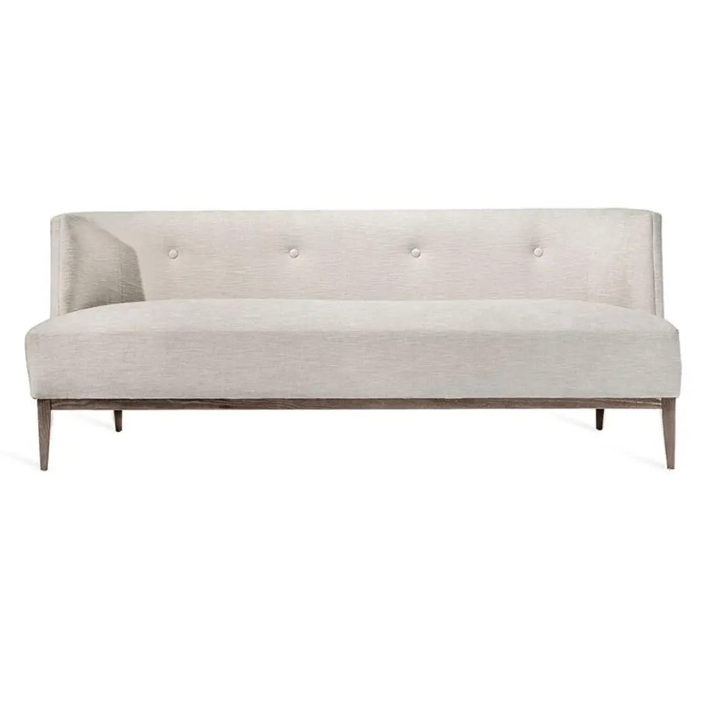 Leave it to Mermelada Estudio to bring a cool safari vibe to a fold-out sleeper sofa. One continuous swoop from arm to arm, sofa is wrapped in luxe white Crypton performance fabric that reads like chenille with a hint of linen. Leather straps wrap around from the side and buckle at the front. Unbuckle and the cushion folds out for a foam mattress that sleeps two. Learn more about Mermelada Estudio on our blog. CB2 exclusive.