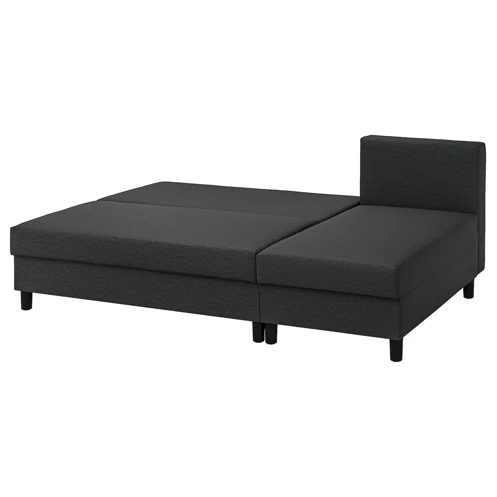 ÄLVDALEN 3-seat sleeper sofa with chaise - Knisa dark gray. Easy to understand and fold out – ÄLVDALEN sofa quickly transforms into a comfortable double bed for you or your overnight friends. Or the best place to take a nice nap.