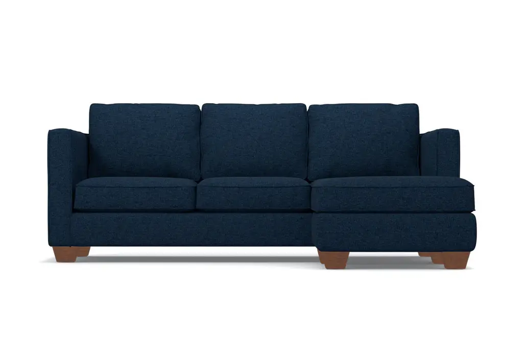 Looking for a living room sofa that’s your perfect match? The Catalina Reversible Chaise Sleeper Sofa has it all: custom comfort, classic good looks and surprising versatility. This American-made sofa bed and chaise even comes with a limited lifetime warranty on the eco-friendly frame and superior workmanship, so you know it’s a partnership made to last. The design of the Catalina Collection makes it a popular choice for homeowners and renters who appreciate a modern style with timeless details. It features high-track arms and sturdy wooden blocked feet. The cozy cushions are great for movie marathons, but they also pop off quickly and easily when you want to fold out the queen-size interior mattress. That's right, this sectional sofa bed doubles as your instant guest room when overnight guests arrive. The chaise portion moves out of the way so you can pull out the spacious queen-size mattress from this stylish couch bed. And there's even one more surprise in store: the chaise lounge can be positioned on either side of the couch, giving you versatility for your current and future living spaces. This Apt2B reversible sleeper sofa comes with plenty of customization options. Choose from over 50 beautiful fabric colors, including bold and vibrant tones along with classic neutrals. The wooden legs are available in three finishes: Natural, Pecan and Espresso. You’ll even get to choose the mattress type, with options of a standard innerspring or upgraded memory foam mattress to suit your guests’ preferences. Make this pull-out couch your own by selecting your customizations today. If you can’t decide which fabric color is right for you, order up to 10 free fabric swatches to check them out in person before placing your order. This high-quality, American-made sleeper sofa is built to last, so it will hold up beautifully even in a busy household. When you need both versatility and style in your space, you can’t go wrong with the Catalina fabric sleeper sofa with reversible chaise.