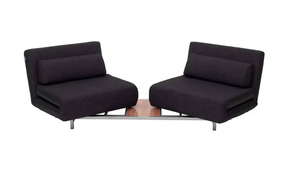 The Anoner 2-Seater Sleeper Sofa is a versatile and practical piece designed for modern living spaces. Built on a sturdy steel frame and upholstered in durable fabric, this sofa seamlessly transitions between seating and sleeping configurations. The Poly Foam filling ensures a comfortable experience, whether you’re sitting or lying down. Each seat of this convertible sofa can swivel 360 degrees and adjust to multiple back positions, allowing for personalized comfort. The unique design also includes a built-in coffee table, adding functionality to your living room. Whether used as individual small beds or combined into one large bed, the Anoner 2-Seater Sleeper Sofa adapts effortlessly to your space and needs.