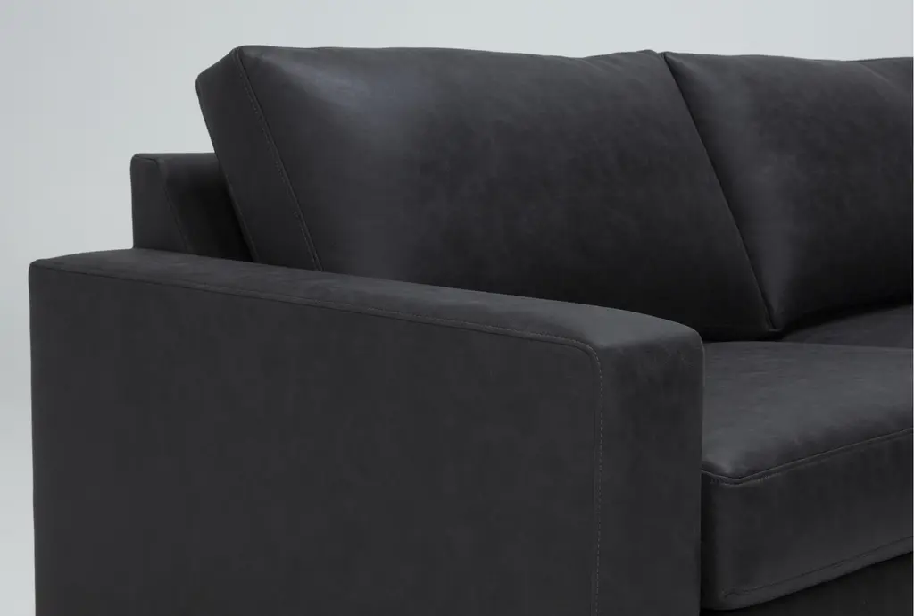 Upgrade your living room with the Araceli II Charcoal Grey Black Vegan Faux Leather 2 Piece 95" Queen Sleeper Sofa & Oversized Chair Set. This modern furniture set offers both style and practicality, featuring a queen sleeper sofa and an oversized chair. The faux leather upholstery ensures durability and easy maintenance, perfect for high-traffic areas. Enjoy comfortable seating and the convenience of a sleeper sofa for overnight guests.
