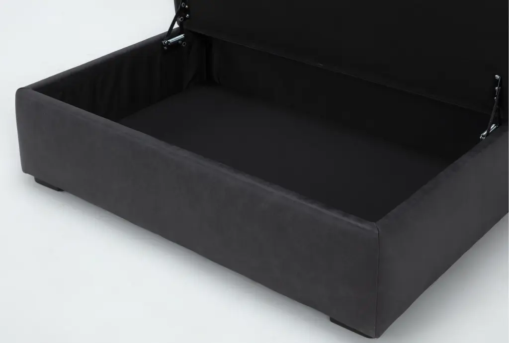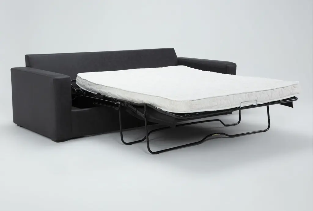 The Araceli II Charcoal Grey Black Vegan Faux Leather 4 Piece Set is perfect for your living room. This set includes a queen sleeper sofa, loveseat, oversized chair, and ottoman. Made with 100% polyester faux leather, it combines modern design with functionality.