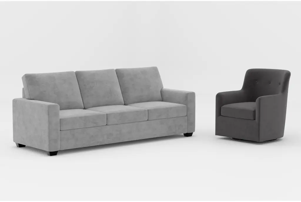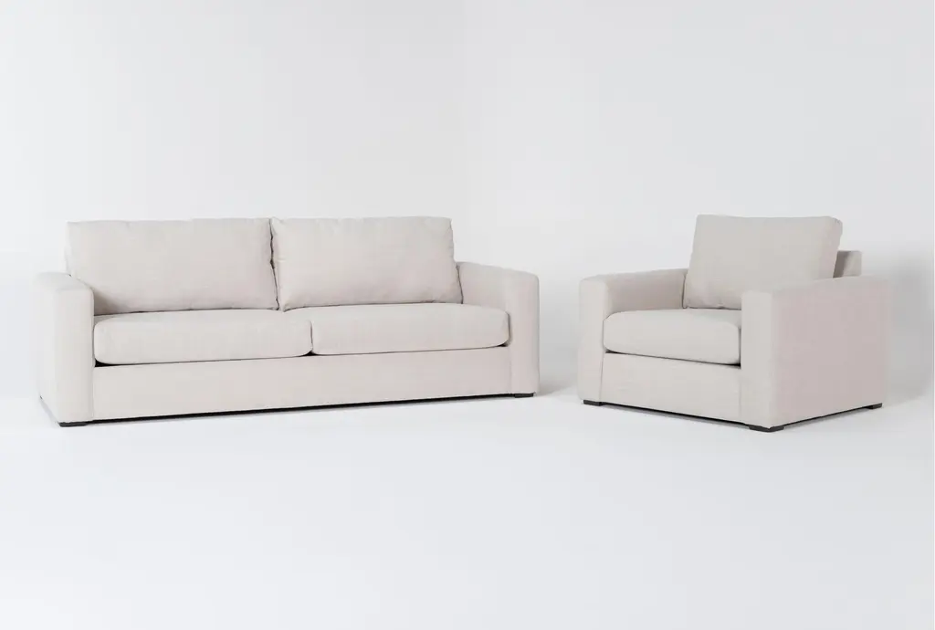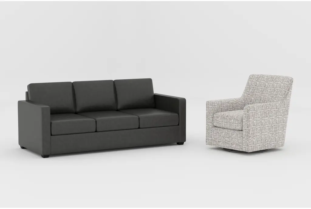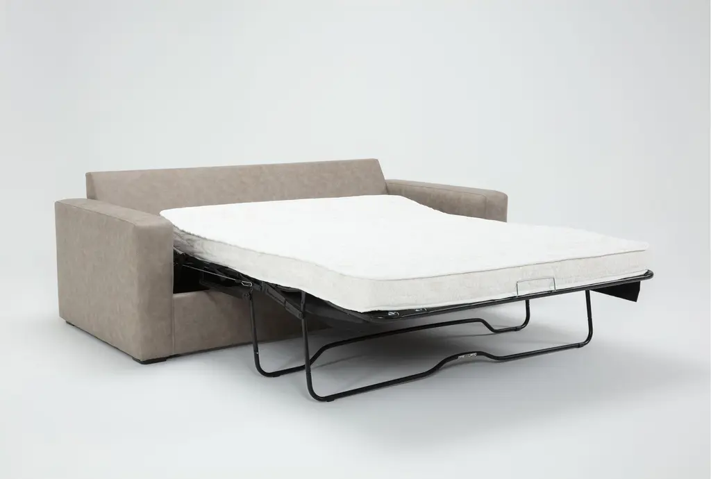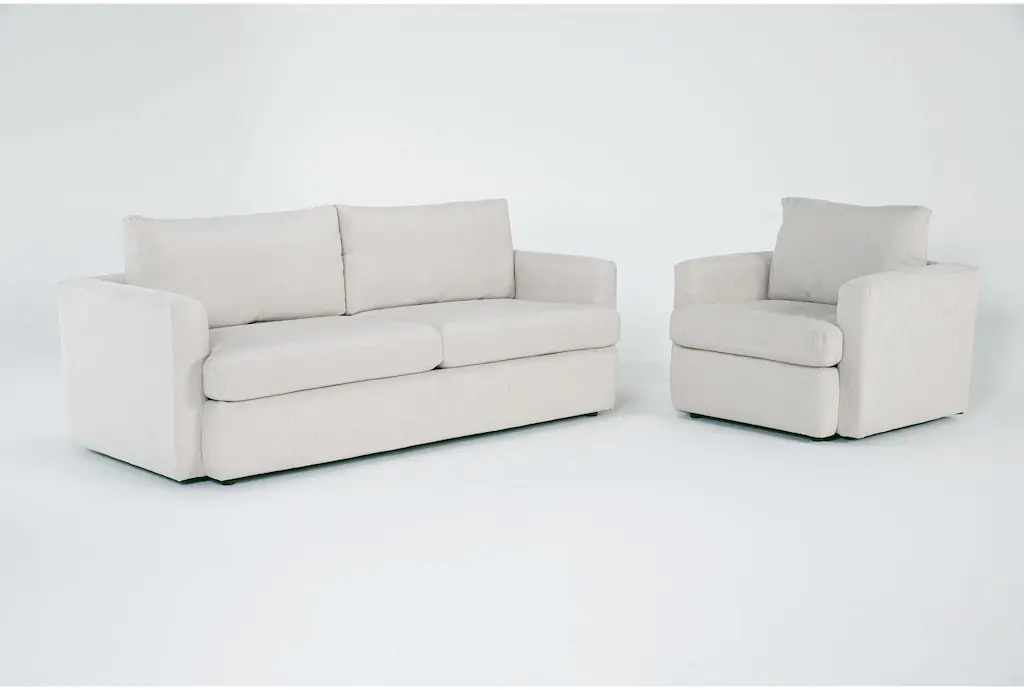 Introducing the Araceli II Taupe Beige Brown Vegan Faux Leather 2 Piece 95" Queen Sleeper Sofa & Oversized Chair Set, perfect for your modern living room. This stylish set features a taupe color and is made from faux leather, providing a sophisticated look and feel. The queen sleeper design ensures comfort and versatility for any occasion.