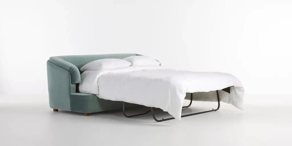 At once refined and relaxed, our Athena Sleeper Sofa blends modern minimalism and luxe comfort. This low-profile design offers a streamlined silhouette, tight-back cushion, and - best-of-all - effortlessly converts to a queen-sized pull-out bed to ensure your guests sleep in comfort and style. We recommend ordering a fabric swatch of your desired fabric to ensure the shade is an ideal fit for your space. Ready to elevate your living room experience? Read our comfort guide so you can easily find the perfect sofa for your home, sweet home. High-resiliency foam core cushions are wrapped in soft fiber padding and a hypo-allergenic blend of down and feathers, for a plush seat with a casual silhouette Sinuous spring seat and webbed back construction Kiln-dried hardwood frame Due to the handcrafted nature of our custom furniture, expect slight variation in the appearance of each unique piece Please reference our upholstery care guide Imported Unlimited Furniture Delivery items in saleable condition may be returned or exchanged within 30 days of the delivery date. Items must be shipped back via our delivery service and cannot be returned to a store. Visit Returning Furniture for more information on completing a return. With Unlimited Furniture Delivery, you enjoy one flat-rate delivery fee for all eligible styles. Orders containing more than one Unlimited Furniture Delivery item will be consolidated and delivered together. If you prefer to receive your items as they become available, please contact our furniture specialists after submitting your order. Furniture will arrive 2–4 weeks after your order has shipped. While you may see a preauthorization on your selected method of payment, you will not be charged until your items are ready to ship from our warehouse. You can find our shipping charges here. We are happy to provide two delivery services: Includes delivery to your room of choice, as well as unpacking, assembly (excluding chandeliers, mirrors, bath vanities, and hanging furniture), and debris removal. Once your items are with our carrier, you will receive an email that outlines how to schedule a delivery. Please clear the space where furniture or rugs will be placed prior to delivery. Our delivery professionals are not permitted to move existing furniture nor are they allowed to move or set up electrical equipment. They are also unable to hang mirrors or wall décor. Available for eligible items at a lower flat-rate fee, and includes in-box delivery to your front door. There is no need to schedule a delivery or provide a signature. You will receive an email notifying you of your scheduled Doorstep Delivery date 1 to 2 days prior to delivery. For multi-unit buildings, items will be placed in a secure lobby area or left with a building attendant. Please note, you are responsible for bringing items into your home. Assembly and debris removal are not included. If Doorstep Delivery-eligible items are purchased with White Glove Delivery-eligible items, we will automatically upgrade all Unlimited Furniture Delivery styles in your order to be delivered via our White Glove service – with no additional fee. Please note Unlimited Furniture Delivery items are unable to ship to US territories, Alaska, Hawaii, islands within the continental US, PO boxes, APO/FPO addresses and locations outside of the US. Overnight and express delivery options are also unavailable. This item is subject to a restocking fee if returned, plus applicable taxes. The fee will be deducted from the refund once the return is processed. To learn more about this policy, please visit our returns page. Want more details on what to expect? Read More.