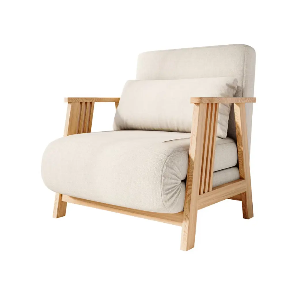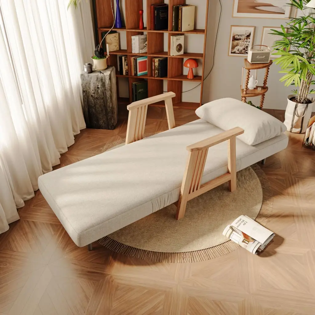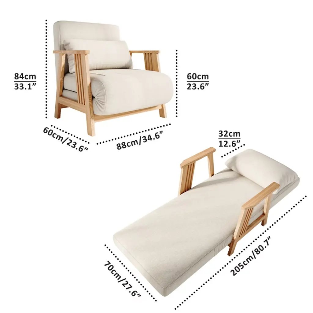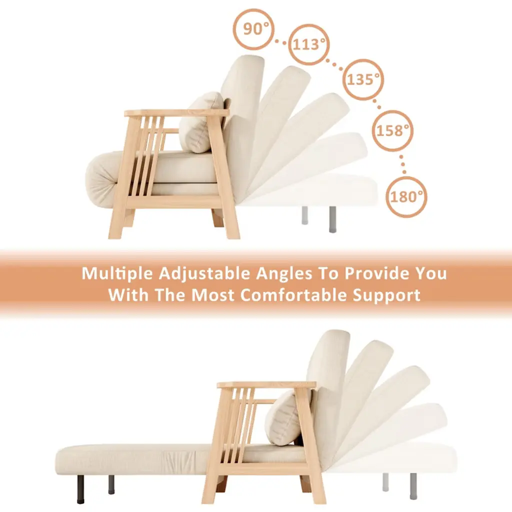 Atjafurn 34.6'' Modern Solid Wood Armchair Futon, Convertible Folding Accent Lounge Chair Recliner Sofa Bed Sleeper Chaise Daybed For Living Room