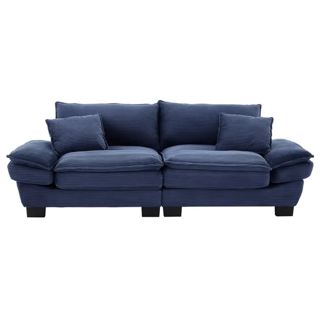 Atjafurn Blue Corduroy Sofa Sleeper Couch Loveseat Sofa With Pillows Comfy Upholstered Deep Seat Sofa For Bedroom,living Room