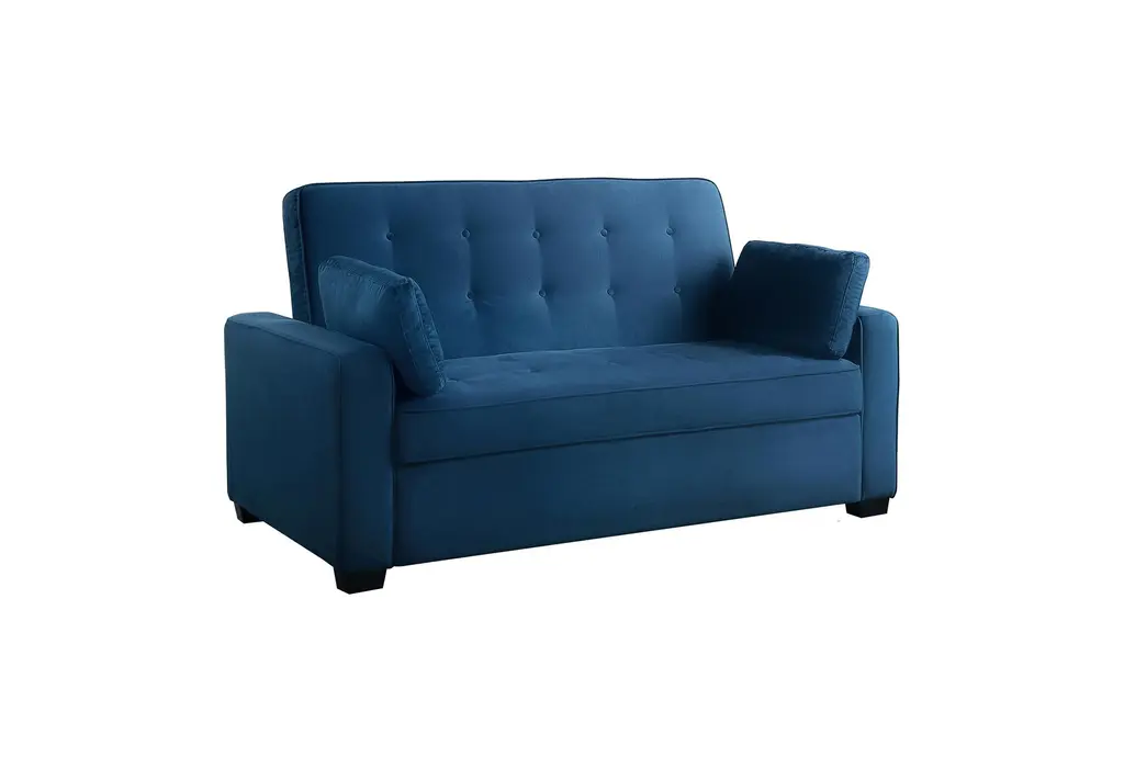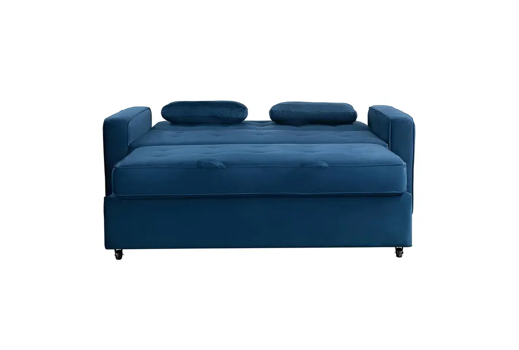 Augustine Navy Blue Fabric 73" Queen Convertible Futon Sleeper Sofa Bed