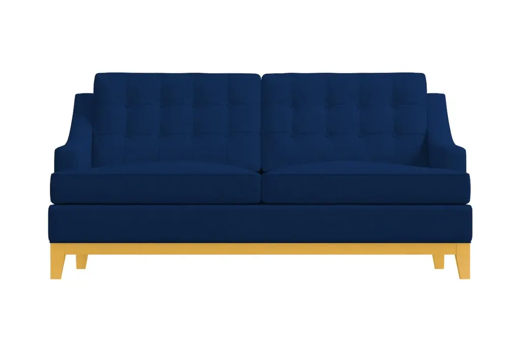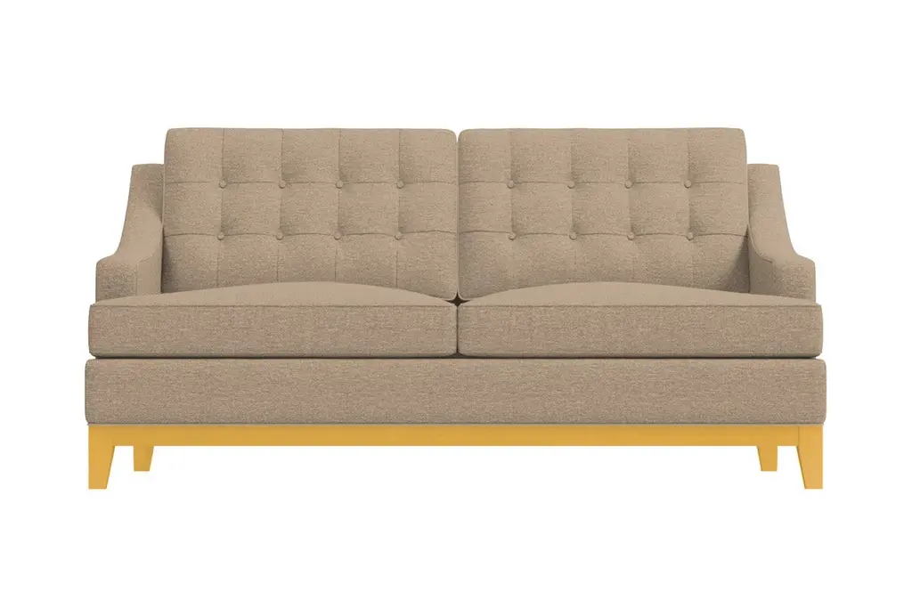 For plenty of posh style in a smaller space, go with the Bannister apartment size sleeper sofa bed from Apt2B. This sophisticated design features curved arms and button-tufted back cushions, giving the couch just a hint of vintage glamour. Despite looking rather elegant, this couch is still incredibly inviting thanks to ultra-plush cushions, a luxurious full-size mattress and a lovely wood base that adds warmth and charm. You'll also get to customize the color by picking from our selection of gorgeous fabrics, leg finishes, and mattress types. Once you've selected the specs, your sofa is crafted right here in the USA. We even throw in a limited lifetime warranty to give you the full VIP treatment. The Bannister sofa has style to spare, but it also fits neatly into tighter spaces. It comes in at 69-inch length to help you find the ideal fit, whether you need seating in your studio apartment, your kids' playroom, your home office or your den.