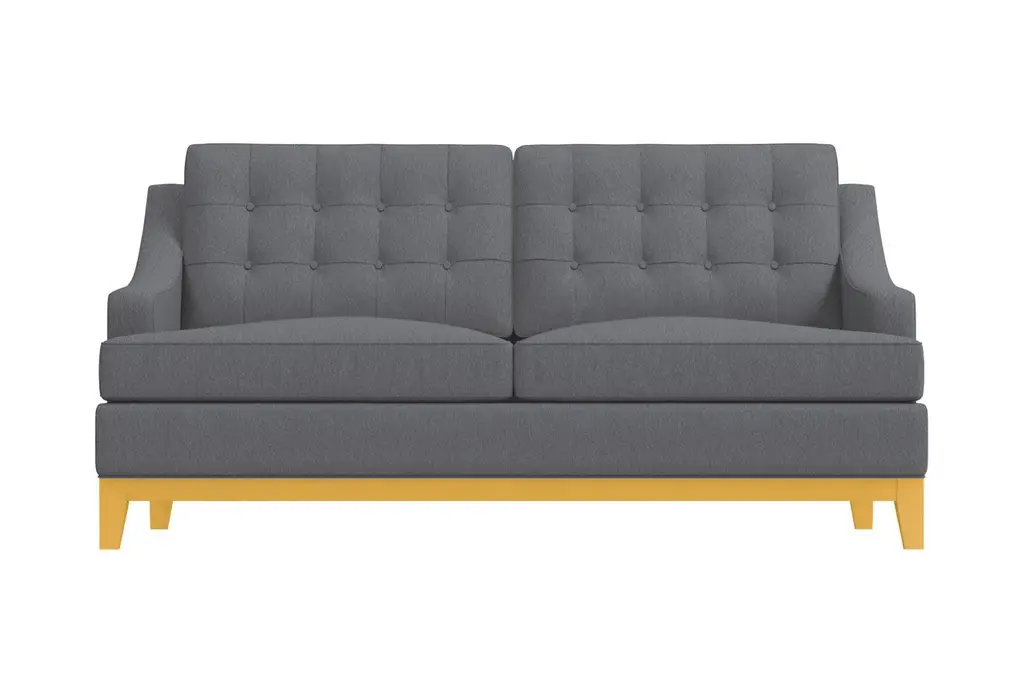For plenty of posh style in a smaller space, go with the Bannister apartment size sleeper sofa bed from Apt2B. This sophisticated design features curved arms and button-tufted back cushions, giving the couch just a hint of vintage glamour. Despite looking rather elegant, this couch is still incredibly inviting thanks to ultra-plush cushions, a luxurious full-size mattress and a lovely wood base that adds warmth and charm. You'll also get to customize the color by picking from our selection of gorgeous fabrics, leg finishes, and mattress types. Once you've selected the specs, your sofa is crafted right here in the USA. We even throw in a limited lifetime warranty to give you the full VIP treatment. The Bannister sofa has style to spare, but it also fits neatly into tighter spaces. It comes in at 69-inch length to help you find the ideal fit, whether you need seating in your studio apartment, your kids' playroom, your home office or your den.