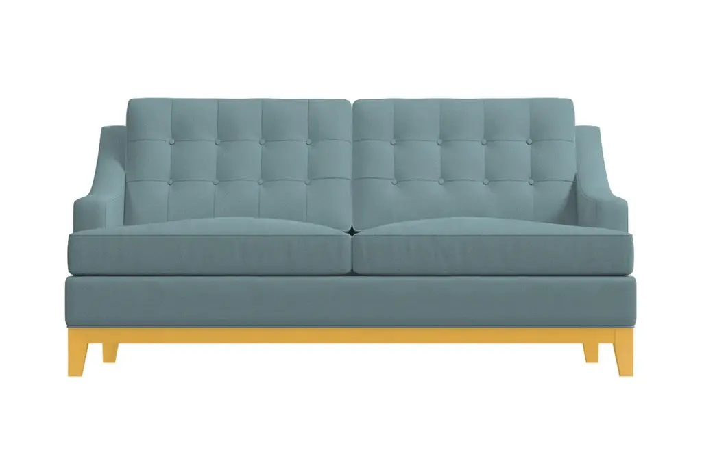 For plenty of posh style in a smaller space, go with the Bannister twin size sleeper sofa bed from Apt2B. This sophisticated design features curved arms and button-tufted back cushions, giving the couch just a hint of vintage glamour. Despite looking rather elegant, this couch is still incredibly inviting thanks to ultra-plush cushions and a lovely wood base that adds warmth and charm. You'll also get to customize the color by picking from our selection of gorgeous fabrics, leg finishes, and mattress types. Once you've selected the specs, your sofa is crafted right here in the USA. We even throw in a limited lifetime warranty to give you the full VIP treatment. The Bannister loveseat has style to spare, but it also fits neatly into tighter spaces. It comes in at 60-inch length to help you find the ideal fit, whether you need seating in your studio apartment, your kids' playroom, your home office or your den.