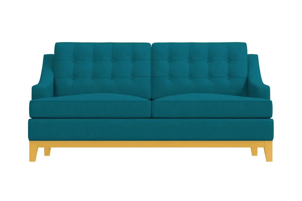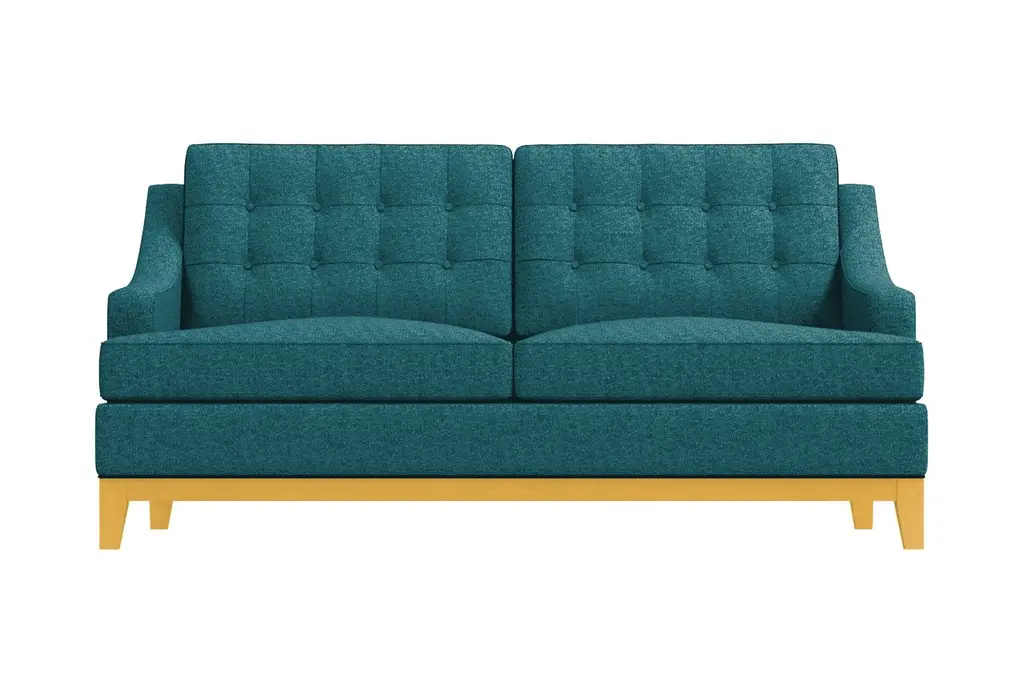 For plenty of posh style in a smaller space, go with the Bannister twin size sleeper sofa bed from Apt2B. This sophisticated design features curved arms and button-tufted back cushions, giving the couch just a hint of vintage glamour. Despite looking rather elegant, this couch is still incredibly inviting thanks to ultra-plush cushions and a lovely wood base that adds warmth and charm. You'll also get to customize the color by picking from our selection of gorgeous fabrics, leg finishes, and mattress types. Once you've selected the specs, your sofa is crafted right here in the USA. We even throw in a limited lifetime warranty to give you the full VIP treatment. The Bannister loveseat has style to spare, but it also fits neatly into tighter spaces. It comes in at 60-inch length to help you find the ideal fit, whether you need seating in your studio apartment, your kids' playroom, your home office or your den.