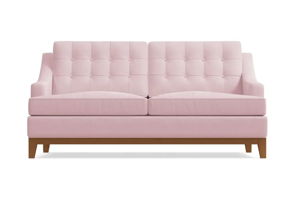 For plenty of posh style in a smaller space, go with the Bannister twin size sleeper sofa bed from Apt2B. This sophisticated design features curved arms and button-tufted back cushions, giving the couch just a hint of vintage glamour. Despite looking rather elegant, this couch is still incredibly inviting thanks to ultra-plush cushions and a lovely wood base that adds warmth and charm. You'll also get to customize the color by picking from our selection of gorgeous fabrics, leg finishes, and mattress types. Once you've selected the specs, your sofa is crafted right here in the USA. We even throw in a limited lifetime warranty to give you the full VIP treatment. The Bannister loveseat has style to spare, but it also fits neatly into tighter spaces. It comes in at 60-inch length to help you find the ideal fit, whether you need seating in your studio apartment, your kids' playroom, your home office or your den.