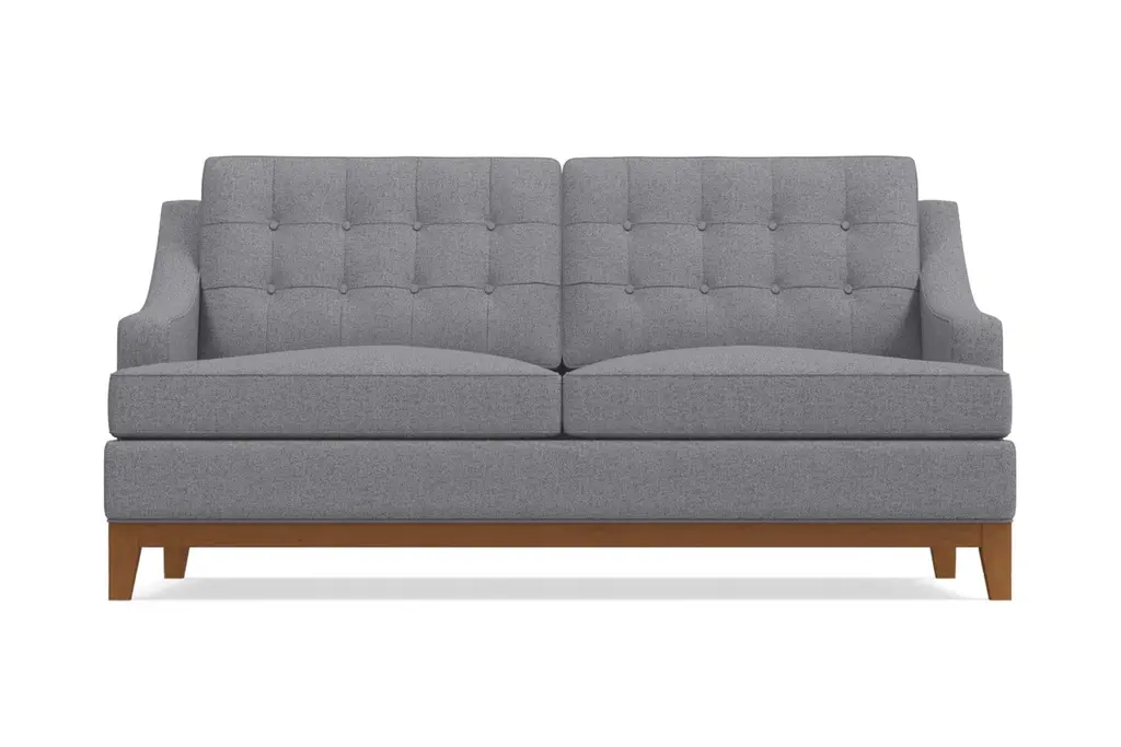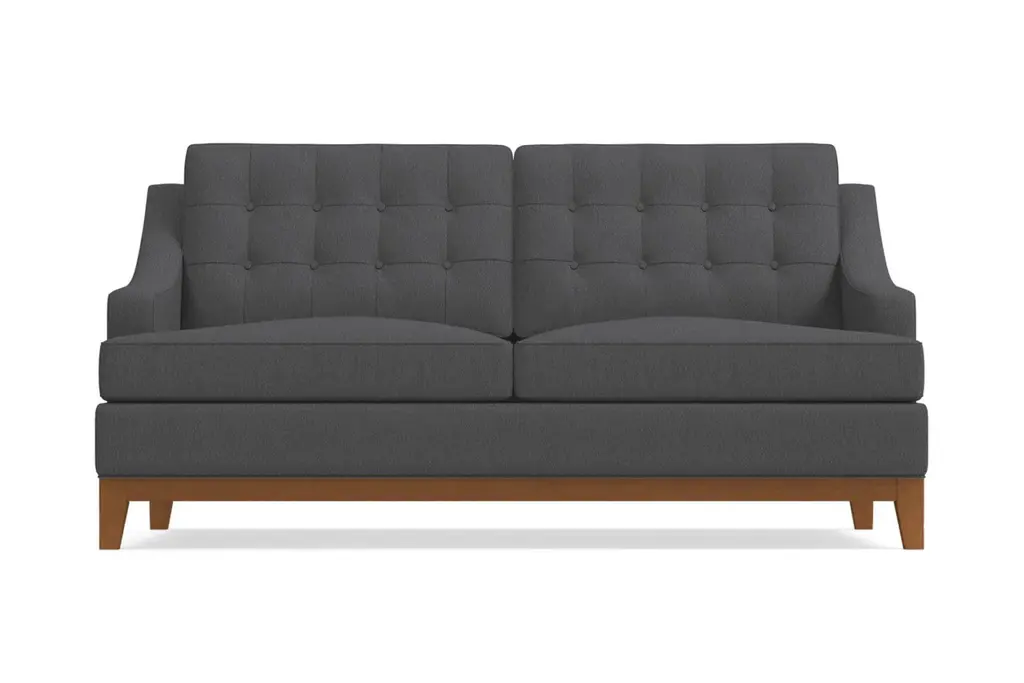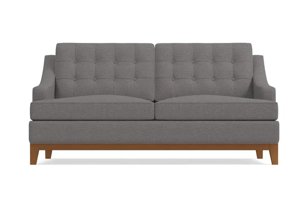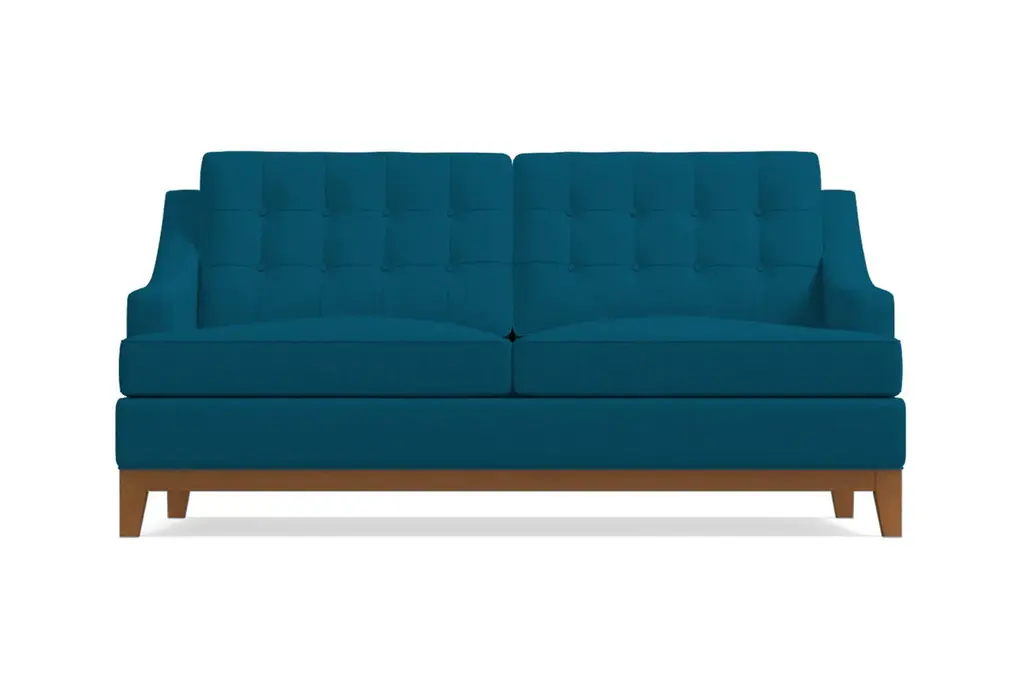 For plenty of posh style in a smaller space, go with the Bannister twin size sleeper sofa bed from Apt2B. This sophisticated design features curved arms and button-tufted back cushions, giving the couch just a hint of vintage glamour. Despite looking rather elegant, this couch is still incredibly inviting thanks to ultra-plush cushions and a lovely wood base that adds warmth and charm. You'll also get to customize the color by picking from our selection of gorgeous fabrics, leg finishes, and mattress types. Once you've selected the specs, your sofa is crafted right here in the USA. We even throw in a limited lifetime warranty to give you the full VIP treatment. The Bannister loveseat has style to spare, but it also fits neatly into tighter spaces. It comes in at 60-inch length to help you find the ideal fit, whether you need seating in your studio apartment, your kids' playroom, your home office or your den.
