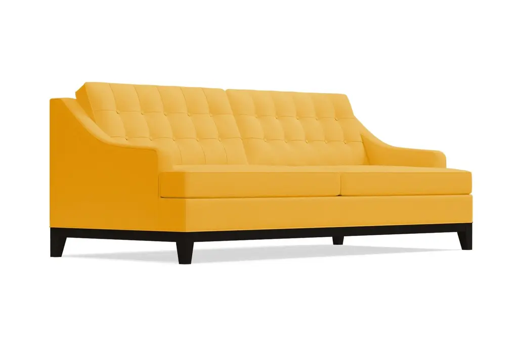 The Bannister Velvet Queen-Size sleeper sofa bed shows off your sophisticated style. Classic button tufting, clean lines and sumptuous velvet upholstery make this modern sofa perfect for transitional dŽcor. And the fold-out queen-size mattress adds versatility with an instant sleepover solution. Our midcentury-inspired velvet sleeper sofa bed adds depth to even the most minimalist interior design concept. Customize the Bannister with your choice of leg finish and a velvet hue that creates a bold pop of color or aligns with a neutral palette. The luxurious feel and easy care of our velvet Performance Fabrics stand out from the rest with surprising durability. Order up to 10 free velvet fabric swatches to help decide which one complements your sense of comfort and beauty. Choose the Deluxe Innerspring Mattress for your velvet queen-size sleeper sofa bed, or upgrade to Memory Foam. The Bannister is made in our Los Angeles facility with a solid wood frame, eco-friendly construction and 2.0-density foam seat cushions. Shipping is always free from Apt2B, and your satisfaction is always guaranteed!