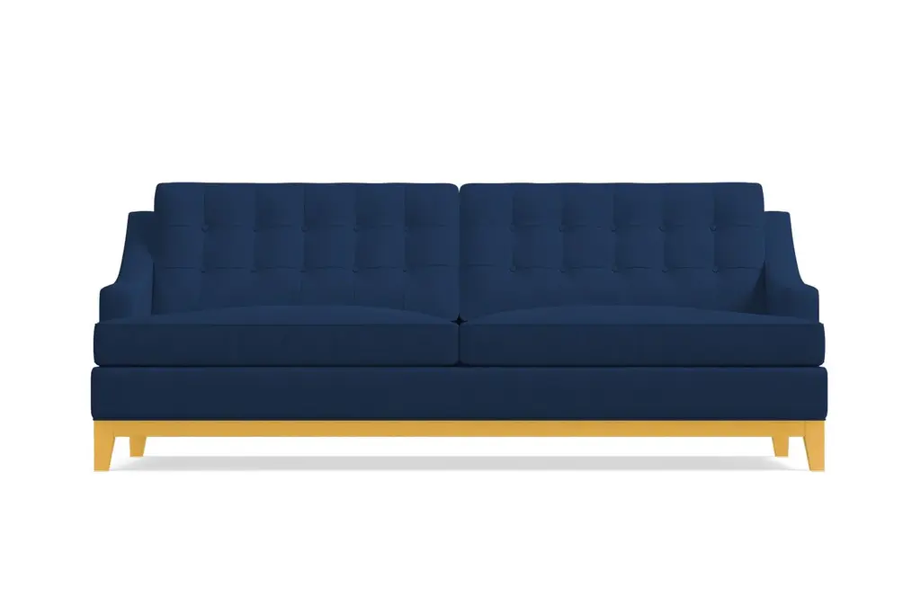 The Bannister Velvet Queen-Size sleeper sofa bed shows off your sophisticated style. Classic button tufting, clean lines and sumptuous velvet upholstery make this modern sofa perfect for transitional dŽcor. And the fold-out queen-size mattress adds versatility with an instant sleepover solution. Our midcentury-inspired velvet sleeper sofa bed adds depth to even the most minimalist interior design concept. Customize the Bannister with your choice of leg finish and a velvet hue that creates a bold pop of color or aligns with a neutral palette. The luxurious feel and easy care of our velvet Performance Fabrics stand out from the rest with surprising durability. Order up to 10 free velvet fabric swatches to help decide which one complements your sense of comfort and beauty. Choose the Deluxe Innerspring Mattress for your velvet queen-size sleeper sofa bed, or upgrade to Memory Foam. The Bannister is made in our Los Angeles facility with a solid wood frame, eco-friendly construction and 2.0-density foam seat cushions. Shipping is always free from Apt2B, and your satisfaction is always guaranteed!