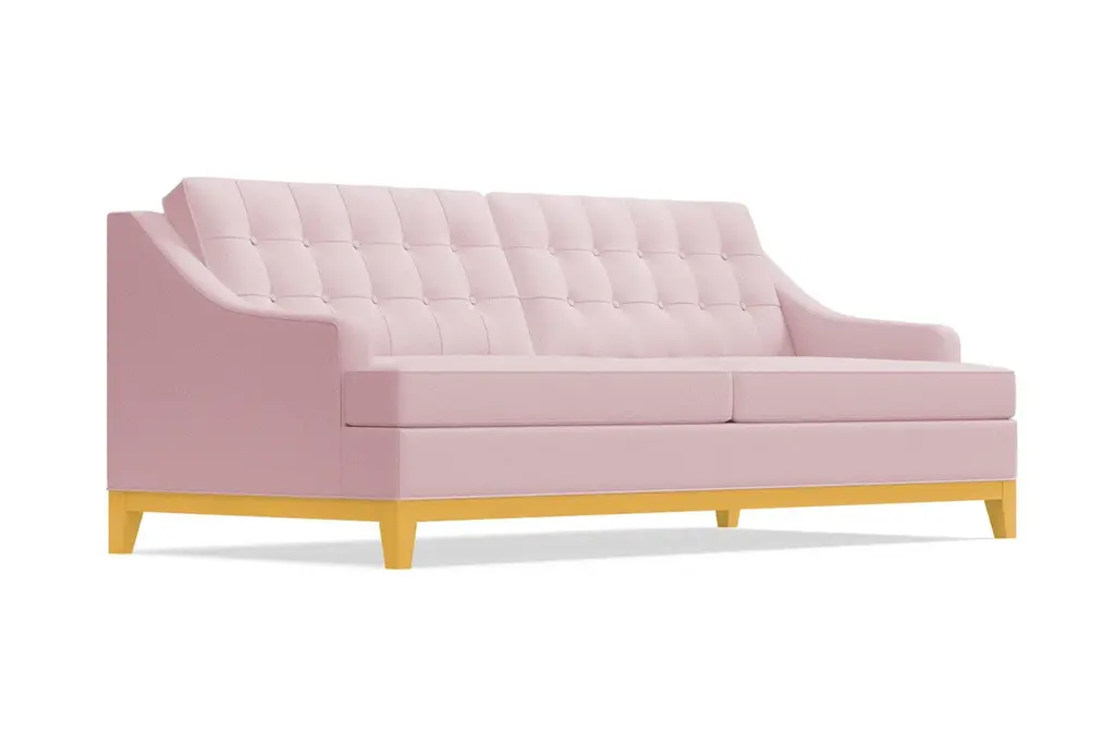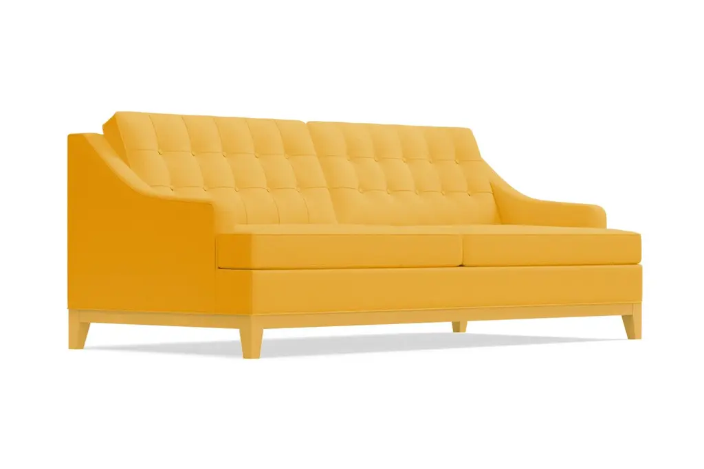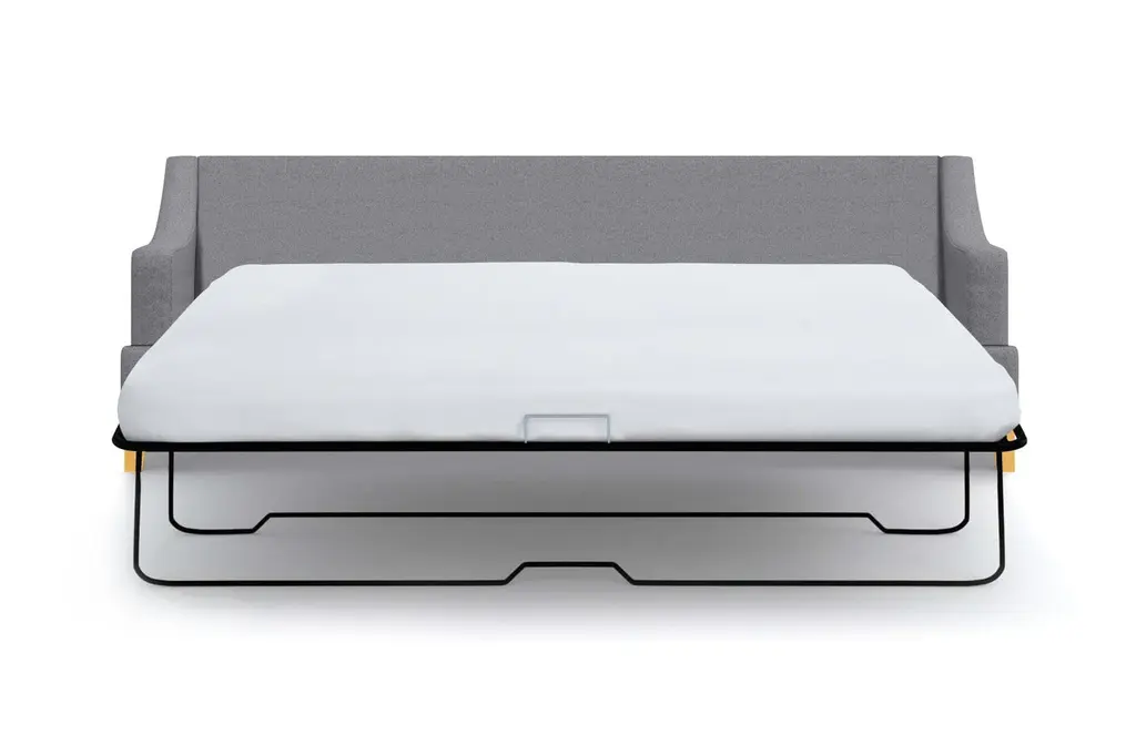 The Bannister Velvet Queen-Size sleeper sofa bed shows off your sophisticated style. Classic button tufting, clean lines and sumptuous velvet upholstery make this modern sofa perfect for transitional dŽcor. And the fold-out queen-size mattress adds versatility with an instant sleepover solution. Our midcentury-inspired velvet sleeper sofa bed adds depth to even the most minimalist interior design concept. Customize the Bannister with your choice of leg finish and a velvet hue that creates a bold pop of color or aligns with a neutral palette. The luxurious feel and easy care of our velvet Performance Fabrics stand out from the rest with surprising durability. Order up to 10 free velvet fabric swatches to help decide which one complements your sense of comfort and beauty. Choose the Deluxe Innerspring Mattress for your velvet queen-size sleeper sofa bed, or upgrade to Memory Foam. The Bannister is made in our Los Angeles facility with a solid wood frame, eco-friendly construction and 2.0-density foam seat cushions. Shipping is always free from Apt2B, and your satisfaction is always guaranteed!