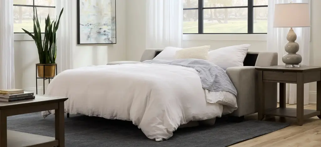 Like any great sleeper, it's what's on the outside and inside that counts. The Bari queen sleeper sofa's cool gray microfiber upholstery is beautiful, soft and durable, and overnight guests can enjoy a comfy pullout queen mattress.