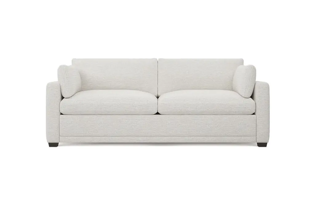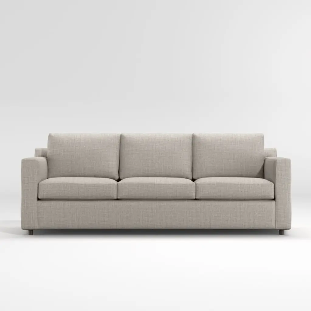 Barrett makes modern affordable and carefree. Upright yet comfortable, this versatile collection looks casual and clean in a contemporary fabric that feels great to the touch and is so durable you don't need to worry about spills or pets. This comfy queen sleeper sofa features a comfortable mattress and a locking tilt-up headrest for reading and media viewing. Designed to always look its best, even in high-traffic family rooms, the queen sleeper sofa dresses up or down to suit your space. The Barrett II Queen Sleeper Sofa is a Crate & Barrel exclusive.