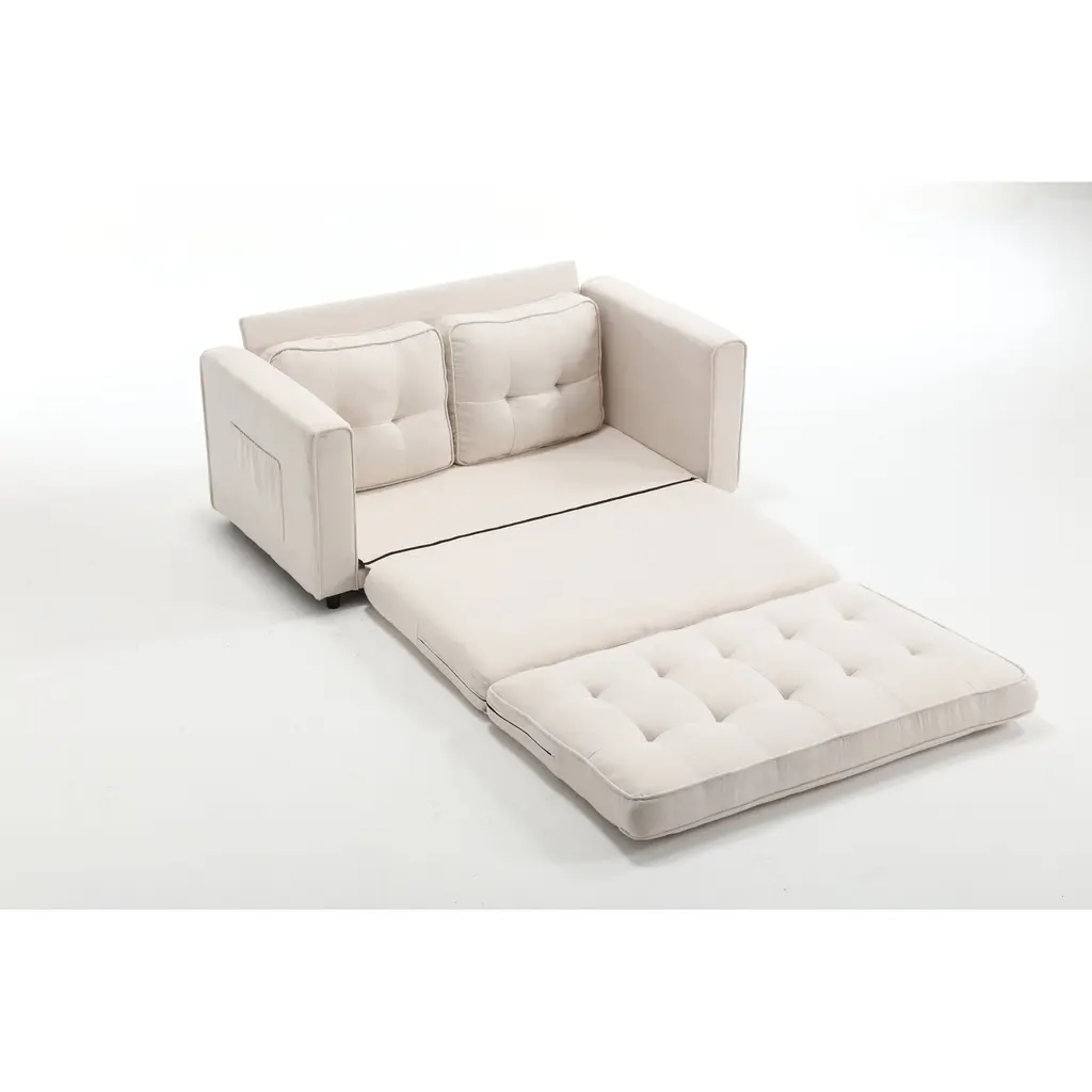 Beige Velvet Loveseat Convertible Futon Sofa Bed, Folding Sofa - Beige