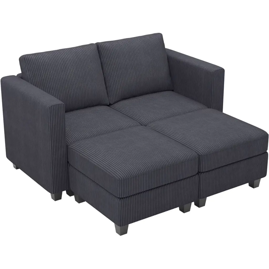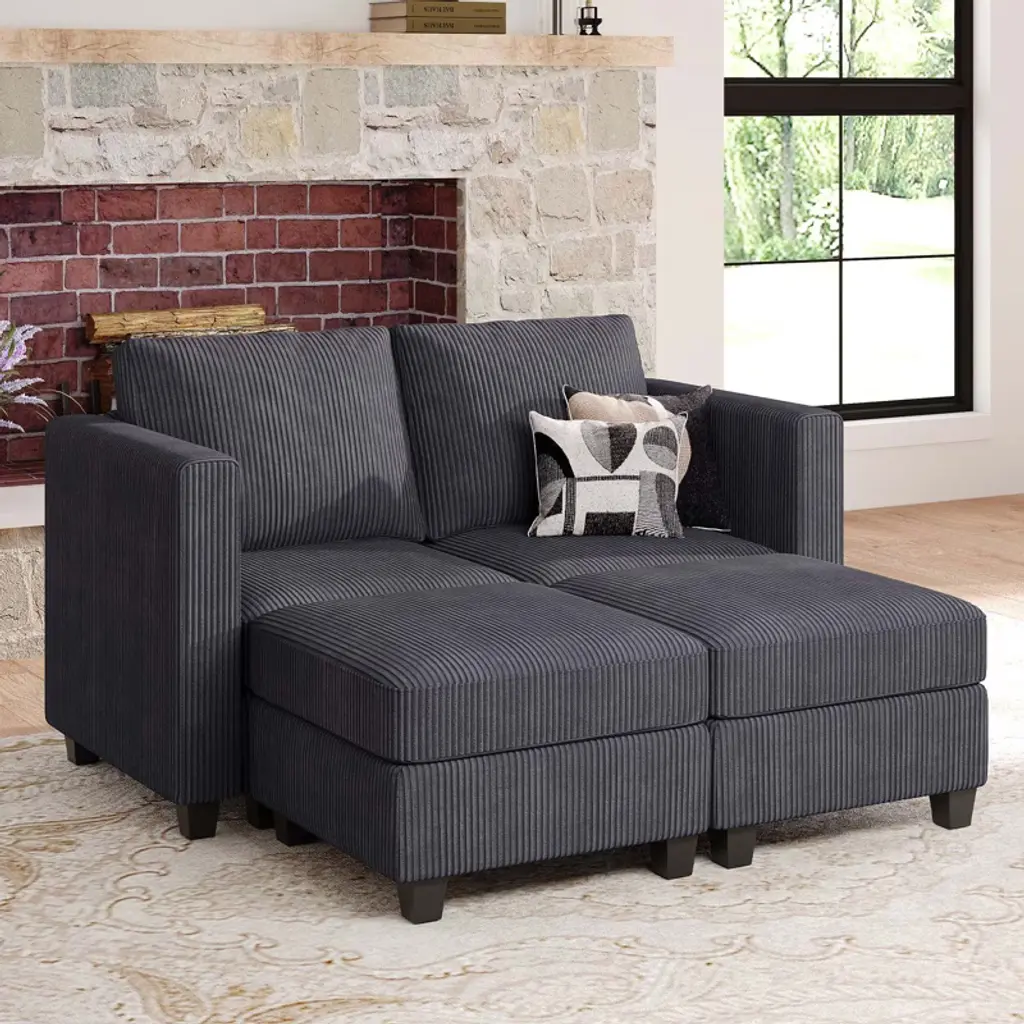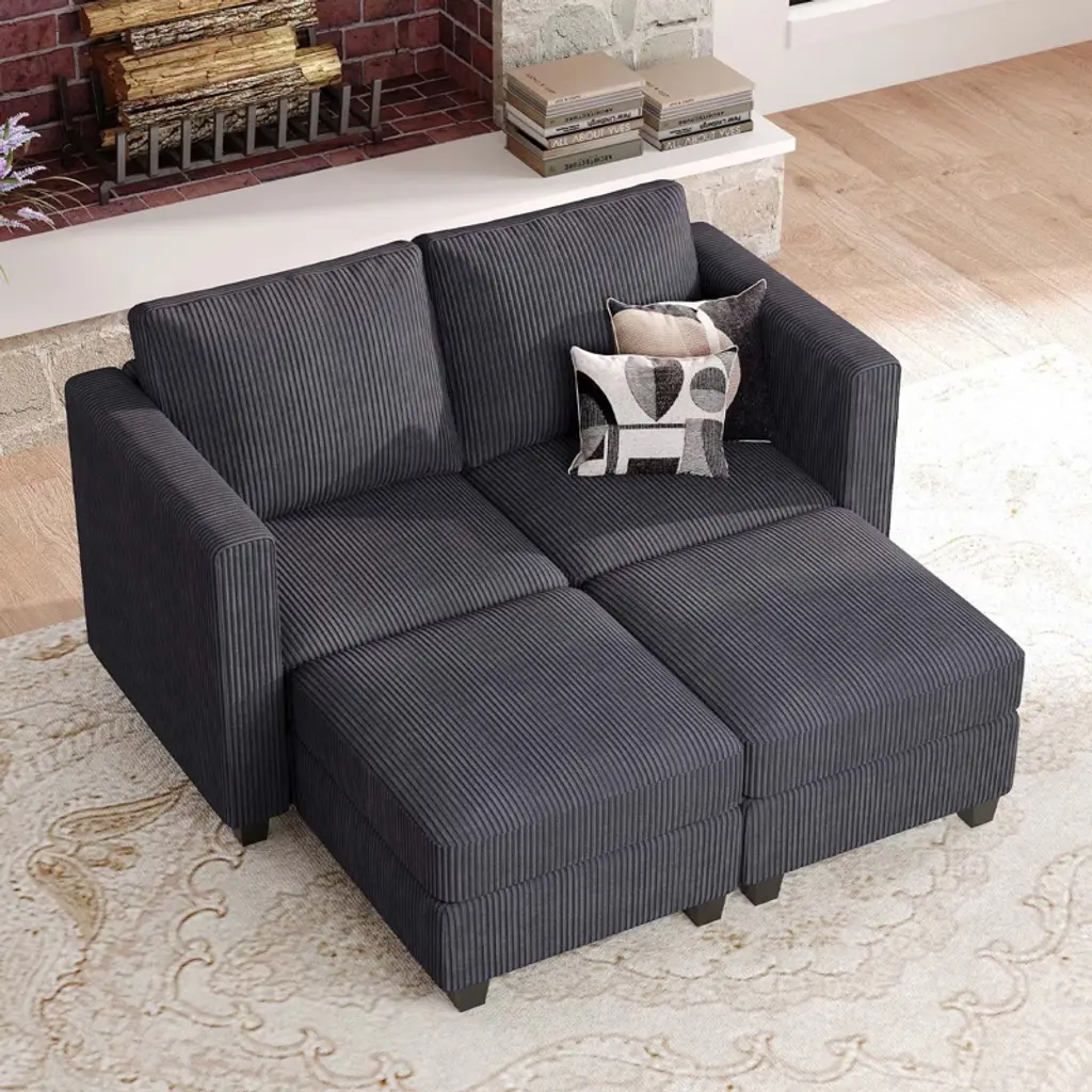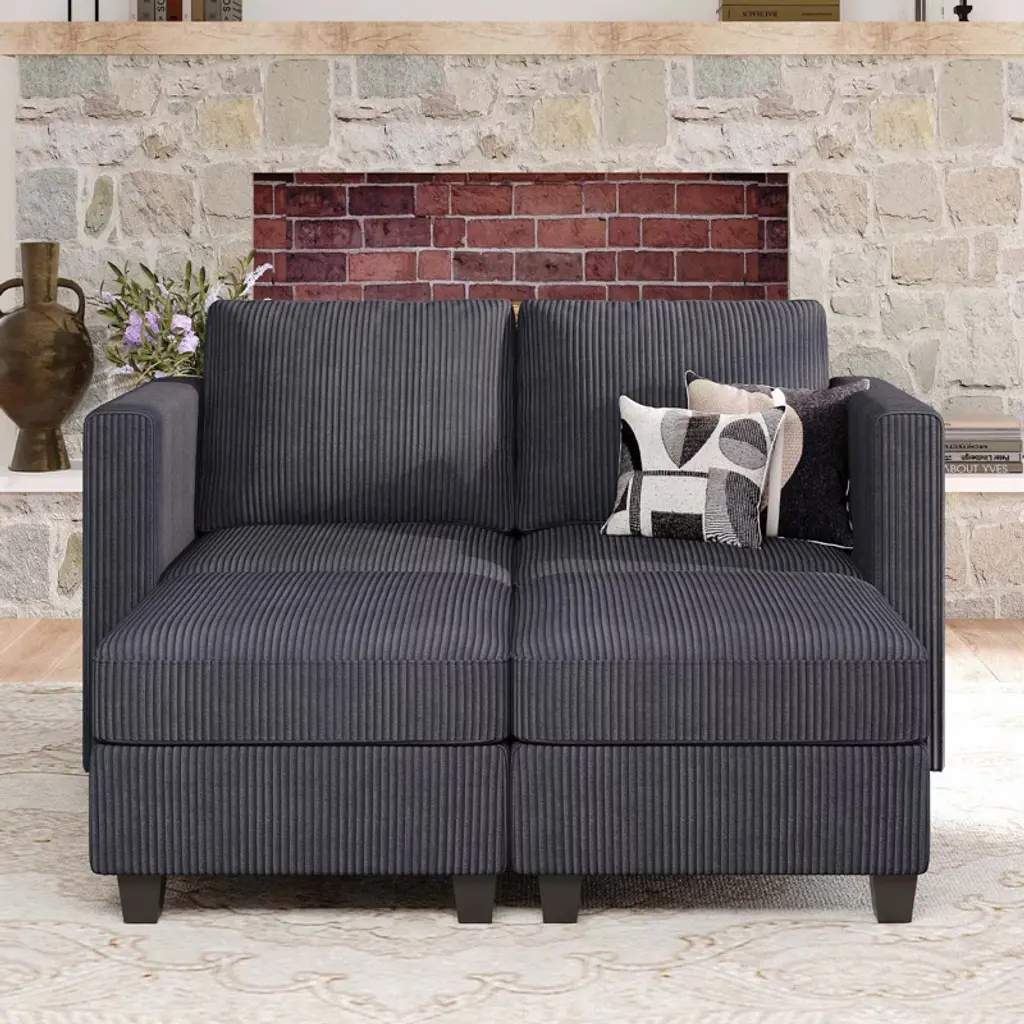Belffin Modular Small Sectional Sofa Corduroy Sleeper Sofa With Storage Modern Couch For Living Room Dark Grey
