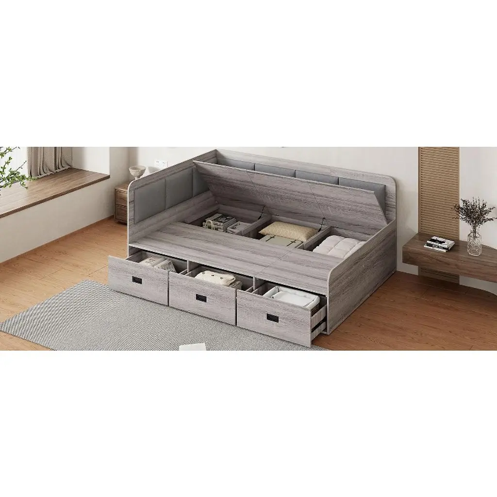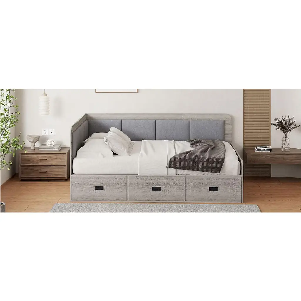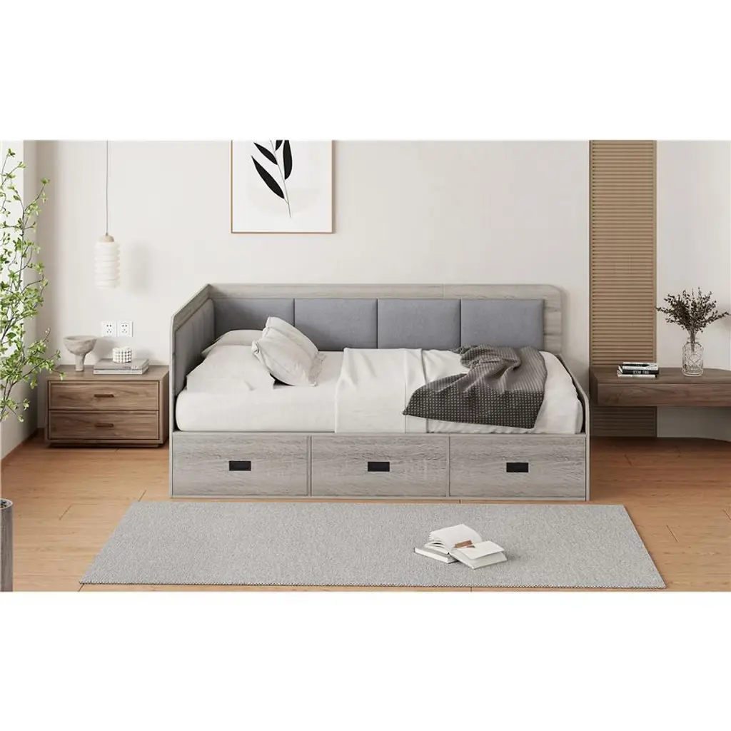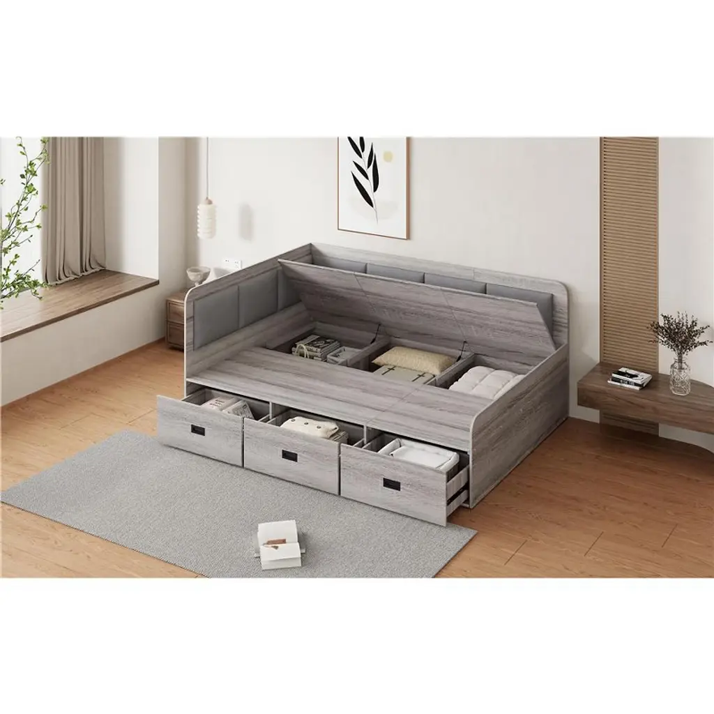 Bellemave Full Size L-shaped Daybed With Storage, Upholstered Backrest, 3 Drawers & Shelves, Sofa Bed For Living Room Or Bedroom, Grey