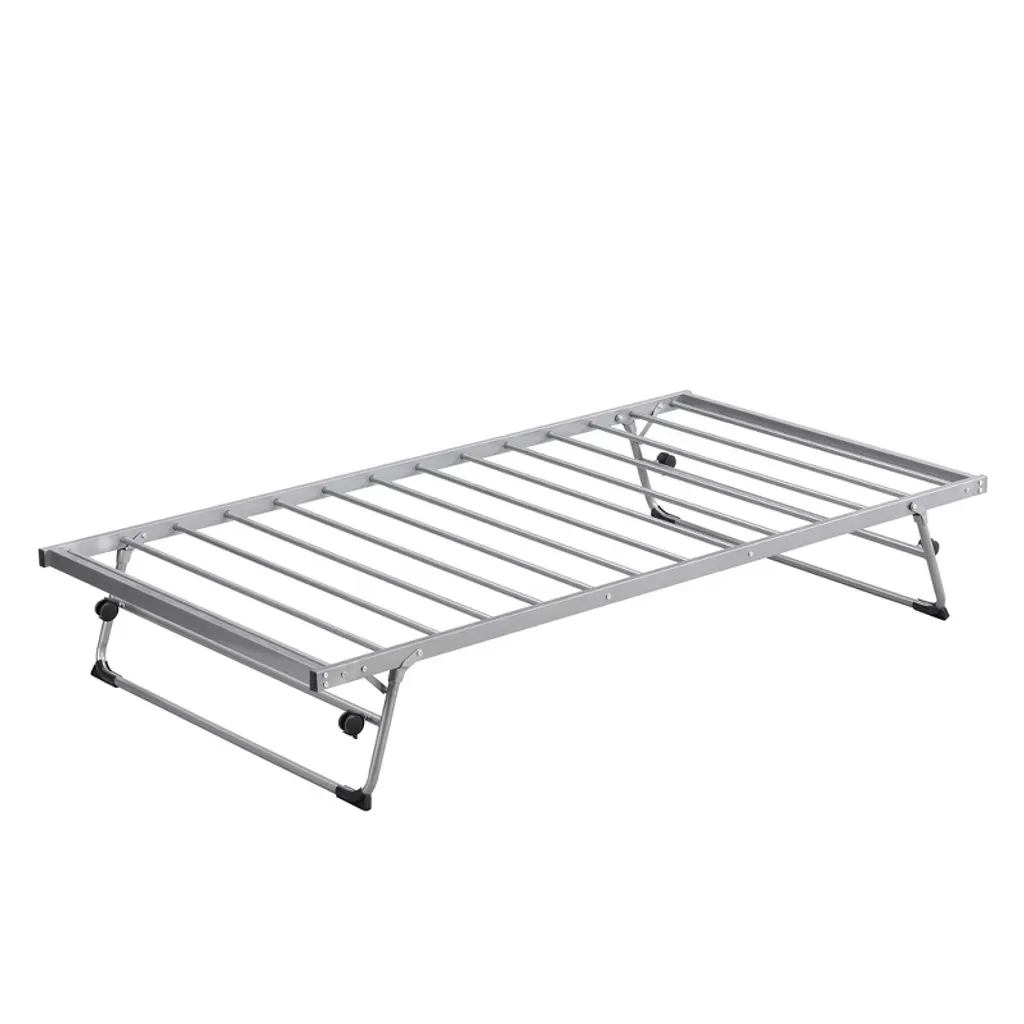 Add a rugged focal point to your room with this Industrial Bed. The full metal design showcases smooth curved metal piping design, providing extraordinary industrial style. The trundle is equipped with braces which makes it easily rise to the height of a bed, offering an inviting place to rest. Constructed of heavy-duty steel, the bed provides great support and better weight capacity. With solid construction and unique appearance, this bed is perfect for kid's sleepovers or accommodating guests.