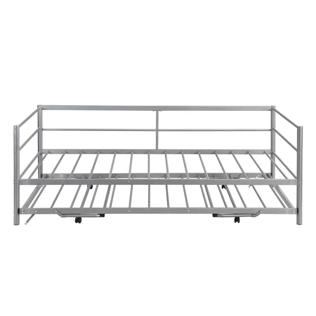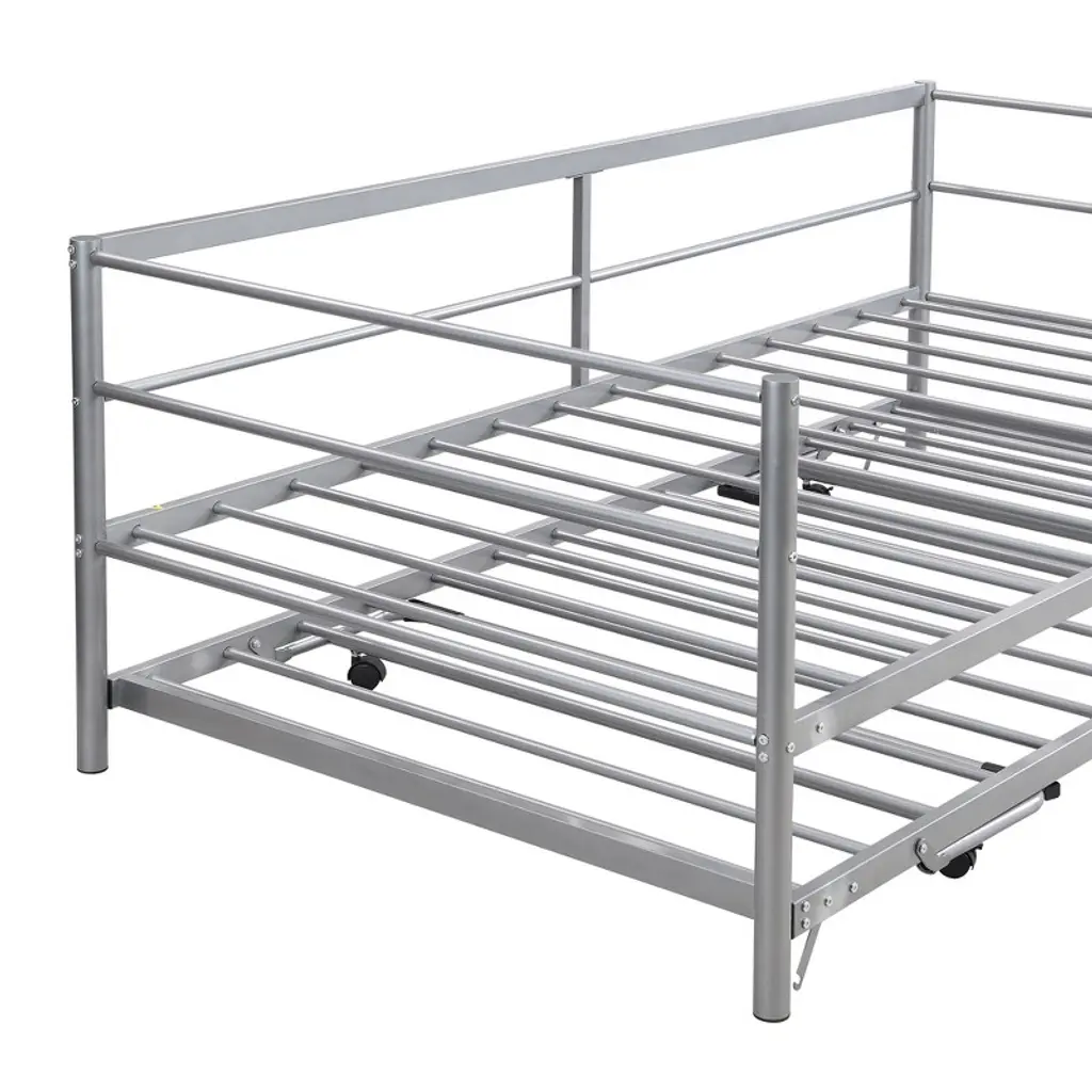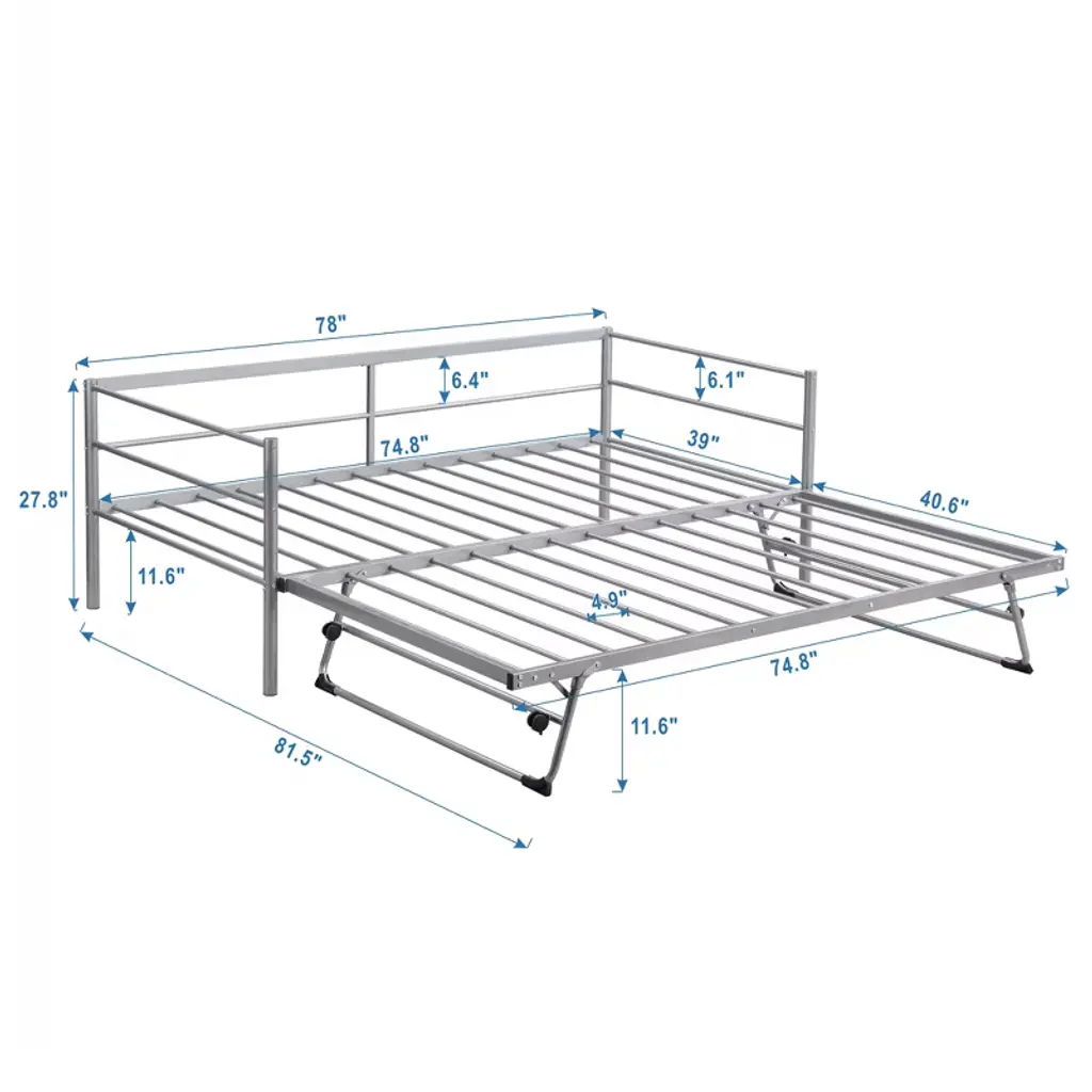 Bellemave Silver Twin Daybed Metal Day Bed Frame With Pop Up Trundle, Metal Sofa Bed With Adjustable Folding Trundle For Bedroom, Living Room,white