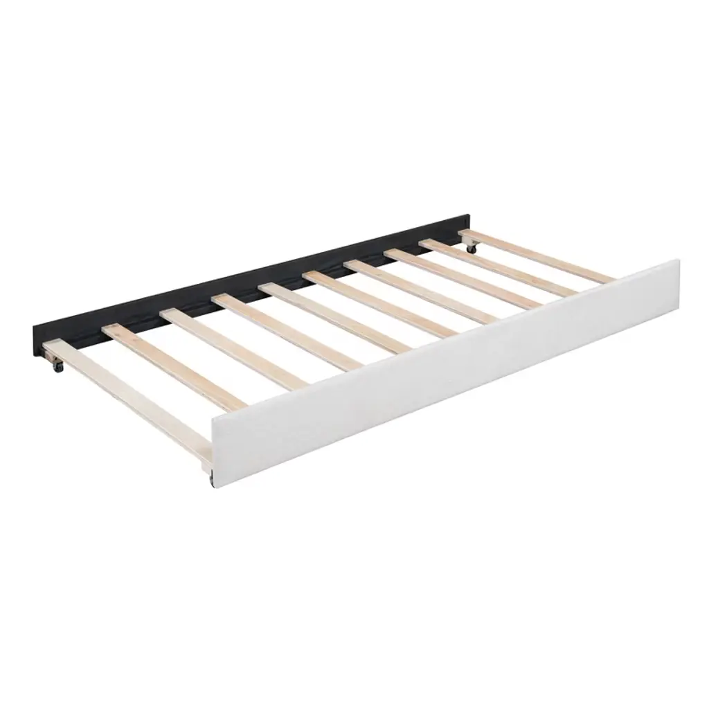 This classic modern design sofa bed deserves your own. Storage drawers, semi-closed design make your home unique. Sturdy wood frame construction and wood slat system add extra stability and safety.This daybed comes with a twin size trundle. Perfect for small apartment or someone who love sleepovers. Simply roll out the trundle when it is needed and roll in when it's not in use. This sofa bed is designed with clean silhouettes and elegant tones. It goes well with all styles of home decor and completes the look of any bedroom.