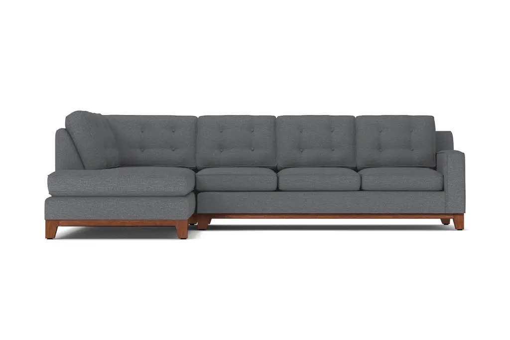 The Brentwood 2 Piece Sleeper Sectional Sofa is the point where sophistication, comfort, and versatility intersect. Button tufting on the back cushions, a solid wood base with tapered legs, and thick arms provide the Brentwood with an elegant and formal profile. The 2.0 high density foam seat cushions and bumper chaise provide all the comfort you and your family (and your pets) will ever need. But the Brentwood doesn't stop there! The Brentwood 2 Piece Sleeper Sectional Sofa also features a Queen-Size Deluxe Innerspring Mattress. The Brentwood is proof that a sleeper sofa doesn't have to sacrifice form for function. The Brentwood is also available in any of our fantastic pet friendly and kid friendly fabrics. The only problem is that with a sleeper sectional sofa as luxurious as the Brentwood, your guests might not ever want to leave.