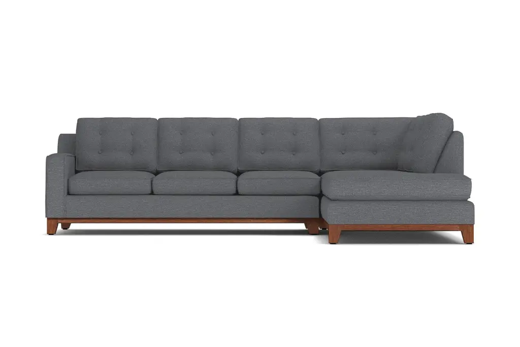 The Brentwood 2 Piece Sleeper Sectional Sofa is the point where sophistication, comfort, and versatility intersect. Button tufting on the back cushions, a solid wood base with tapered legs, and thick arms provide the Brentwood with an elegant and formal profile. The 2.0 high density foam seat cushions and bumper chaise provide all the comfort you and your family (and your pets) will ever need. But the Brentwood doesn't stop there! The Brentwood 2 Piece Sleeper Sectional Sofa also features a Queen-Size Deluxe Innerspring Mattress. The Brentwood is proof that a sleeper sofa doesn't have to sacrifice form for function. The Brentwood is also available in any of our fantastic pet friendly and kid friendly fabrics. The only problem is that with a sleeper sectional sofa as luxurious as the Brentwood, your guests might not ever want to leave.