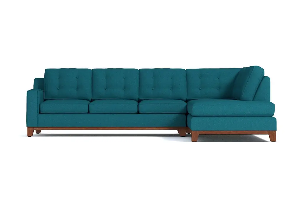 The Brentwood 2 Piece Sleeper Sectional Sofa is the point where sophistication, comfort, and versatility intersect. Button tufting on the back cushions, a solid wood base with tapered legs, and thick arms provide the Brentwood with an elegant and formal profile. The 2.0 high density foam seat cushions and bumper chaise provide all the comfort you and your family (and your pets) will ever need. But the Brentwood doesn't stop there! The Brentwood 2 Piece Sleeper Sectional Sofa also features a Queen-Size Deluxe Innerspring Mattress. The Brentwood is proof that a sleeper sofa doesn't have to sacrifice form for function. The Brentwood is also available in any of our fantastic pet friendly and kid friendly fabrics. The only problem is that with a sleeper sectional sofa as luxurious as the Brentwood, your guests might not ever want to leave.