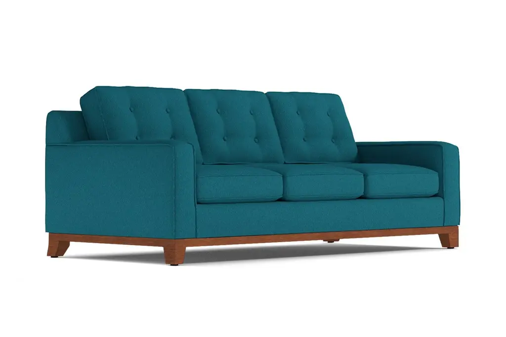 You don't have to be living in the lap of luxury to get an upscale look in your home. This super-stylish and completely customizable Brentwood sleeper sofa bed with button-tufted cushions, slim arms and a solid wood base is just as luxurious as the homes in the swanky L.A. neighborhood it's named after. It's true - even a celeb wouldn't mind crashing on this couch for the night, especially when there's a roomy queen-size mattress inside where they can drift off to dreamland. You can even make this comfortable sleeper sofa bed more luxurious by upgrading from the deluxe innerspring mattress to an ultra-plush memory foam mattress. This stylish sofa from Apt2B is made in the USA and comes with a limited lifetime warranty - some nice perks that will definitely make you feel like you're getting the Hollywood treatment. Add a custom touch to the Brentwood sleeper sofa bed by choosing from our selection of fabric colors and leg finishes. There are dozens of possible combinations, ensuring that your couch is 100 percent unique to you.