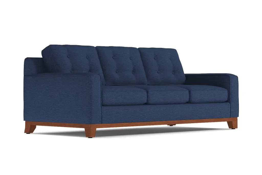 You don't have to be living in the lap of luxury to get an upscale look in your home. This super-stylish and completely customizable Brentwood sleeper sofa bed with button-tufted cushions, slim arms and a solid wood base is just as luxurious as the homes in the swanky L.A. neighborhood it's named after. It's true - even a celeb wouldn't mind crashing on this couch for the night, especially when there's a roomy queen-size mattress inside where they can drift off to dreamland. You can even make this comfortable sleeper sofa bed more luxurious by upgrading from the deluxe innerspring mattress to an ultra-plush memory foam mattress. This stylish sofa from Apt2B is made in the USA and comes with a limited lifetime warranty - some nice perks that will definitely make you feel like you're getting the Hollywood treatment. Add a custom touch to the Brentwood sleeper sofa bed by choosing from our selection of fabric colors and leg finishes. There are dozens of possible combinations, ensuring that your couch is 100 percent unique to you.