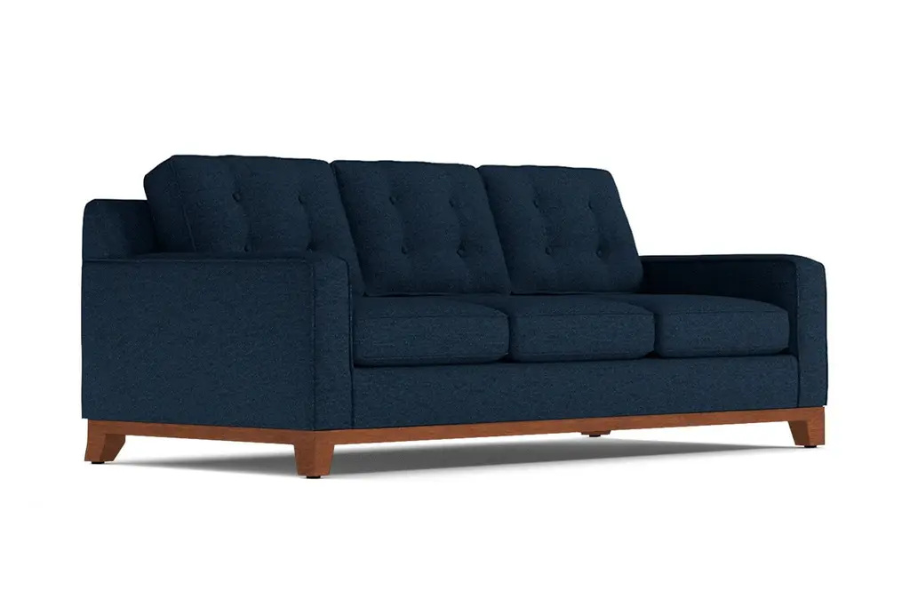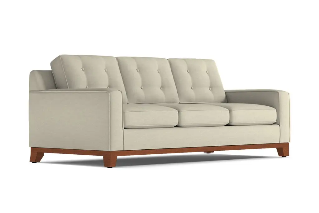 You don't have to be living in the lap of luxury to get an upscale look in your home. This super-stylish and completely customizable Brentwood sleeper sofa bed with button-tufted cushions, slim arms and a solid wood base is just as luxurious as the homes in the swanky L.A. neighborhood it's named after. It's true - even a celeb wouldn't mind crashing on this couch for the night, especially when there's a roomy queen-size mattress inside where they can drift off to dreamland. You can even make this comfortable sleeper sofa bed more luxurious by upgrading from the deluxe innerspring mattress to an ultra-plush memory foam mattress. This stylish sofa from Apt2B is made in the USA and comes with a limited lifetime warranty - some nice perks that will definitely make you feel like you're getting the Hollywood treatment. Add a custom touch to the Brentwood sleeper sofa bed by choosing from our selection of fabric colors and leg finishes. There are dozens of possible combinations, ensuring that your couch is 100 percent unique to you.