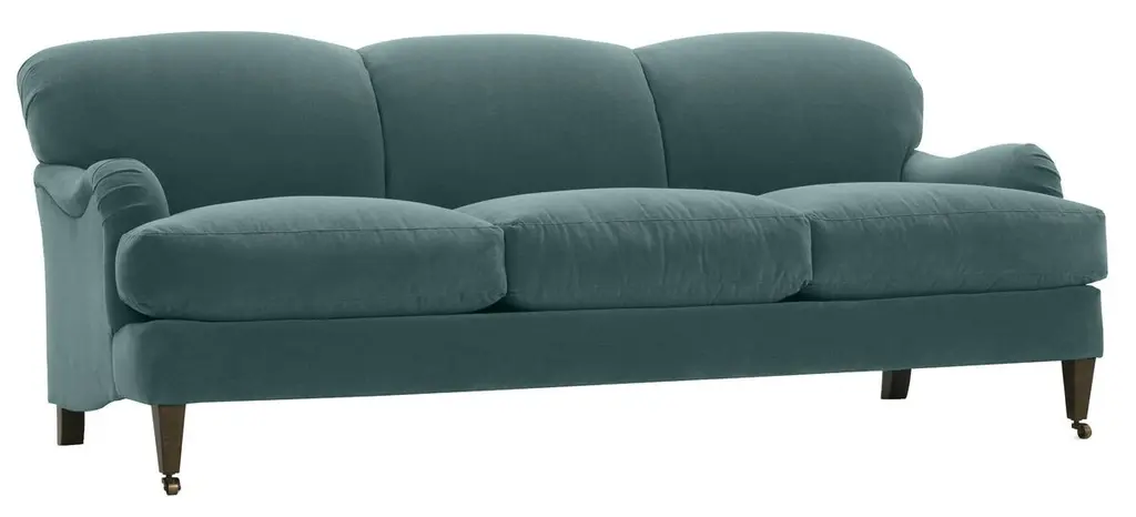 Available only at One Kings Lane: This queen-size sleeper sofa is framed in kiln-dried hardwood with classic English arms and an ample feather-and-down fill. We love the versatility of this sofa's neutral upholstery and herringbone texture, while caster wheels allow for easy mobility and protect floors against scratching and marring. Two matching throw pillows are included. Handcrafted in the USA.