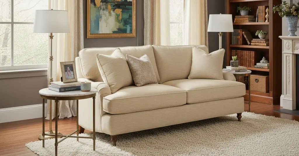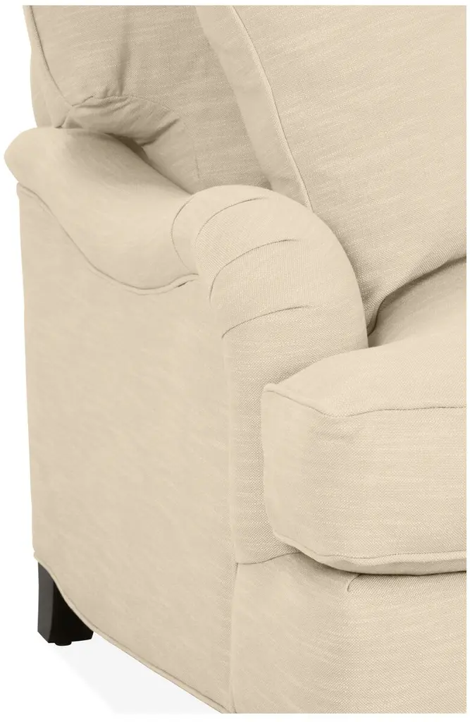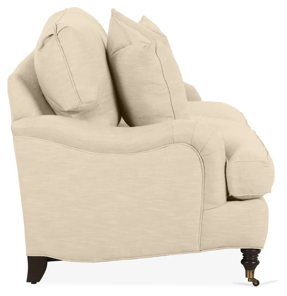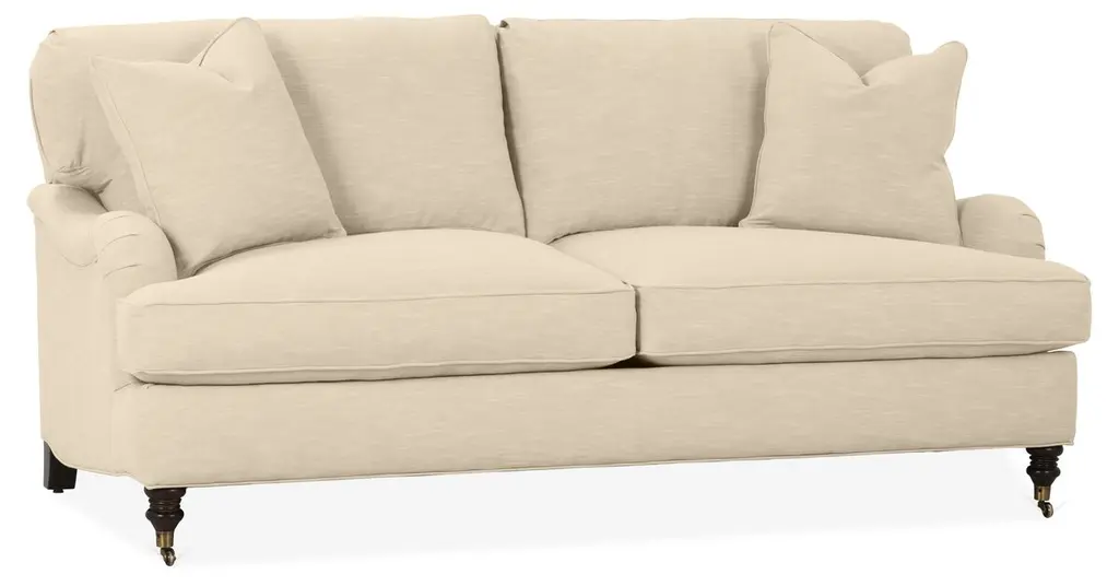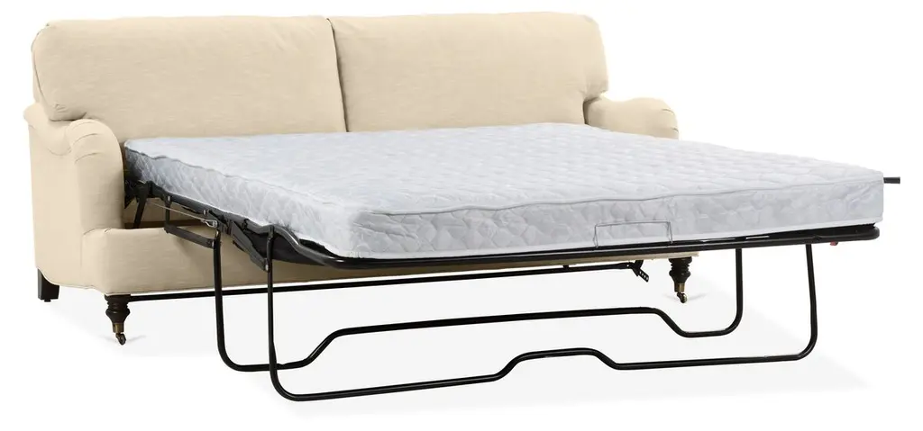 Available only at One Kings Lane: This queen-size sleeper sofa is framed in kiln-dried hardwood with classic English arms and an ample feather-and-down fill. We love the versatility of this sofa's neutral upholstery and herringbone texture, while caster wheels allow for easy mobility and protect floors against scratching and marring. Two matching throw pillows are included. Handcrafted in the USA.