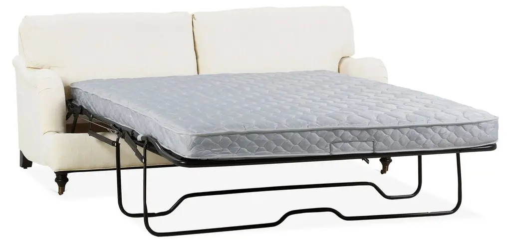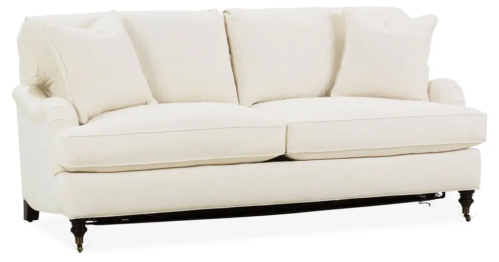 Available only at One Kings Lane: This queen-size sleeper sofa is framed in kiln-dried hardwood with classic English arms and an ample feather-and-down fill. We love the versatility of this sofa's neutral upholstery and herringbone texture, while caster wheels allow for easy mobility and protect floors against scratching and marring. Two matching throw pillows are included. Handcrafted in the USA.