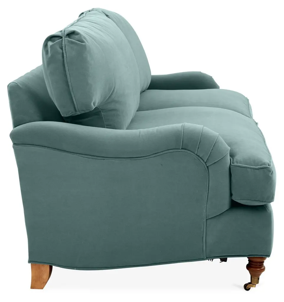 Available only at One Kings Lane: This queen-size sleeper sofa is framed in kiln-dried hardwood with classic English arms and an ample feather-and-down fill. We love the versatility of this sofa's neutral upholstery and herringbone texture, while caster wheels allow for easy mobility and protect floors against scratching and marring. Two matching throw pillows are included. Handcrafted in the USA.