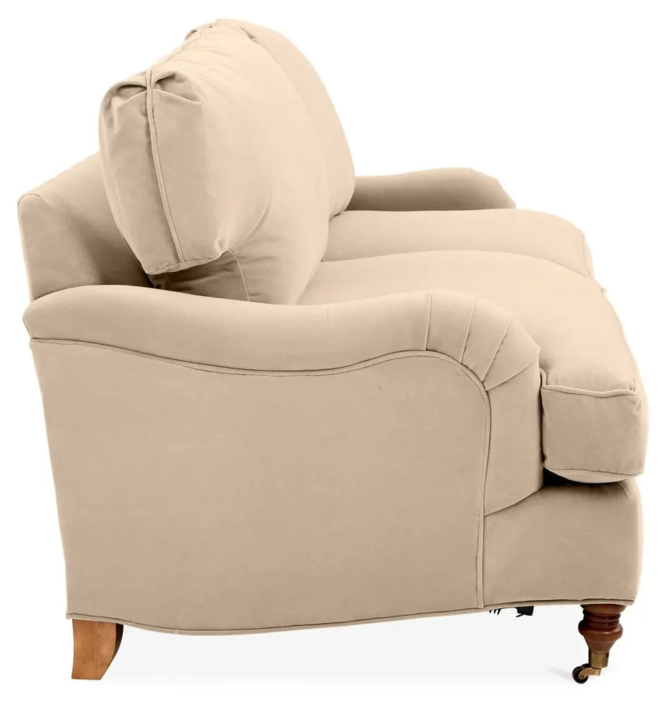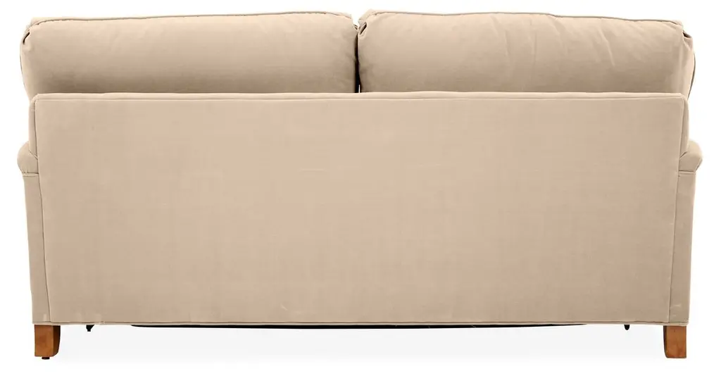 Available only at One Kings Lane: This queen-size sleeper sofa is framed in kiln-dried hardwood with classic English arms and an ample feather-and-down fill. We love the versatility of this sofa's neutral upholstery and herringbone texture, while caster wheels allow for easy mobility and protect floors against scratching and marring. Two matching throw pillows are included. Handcrafted in the USA.