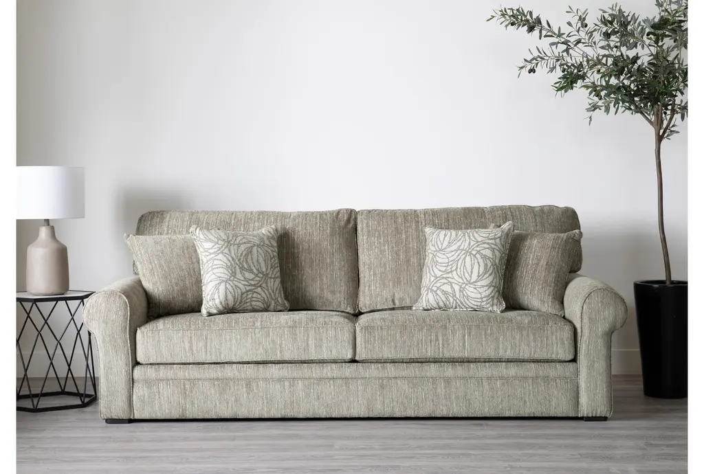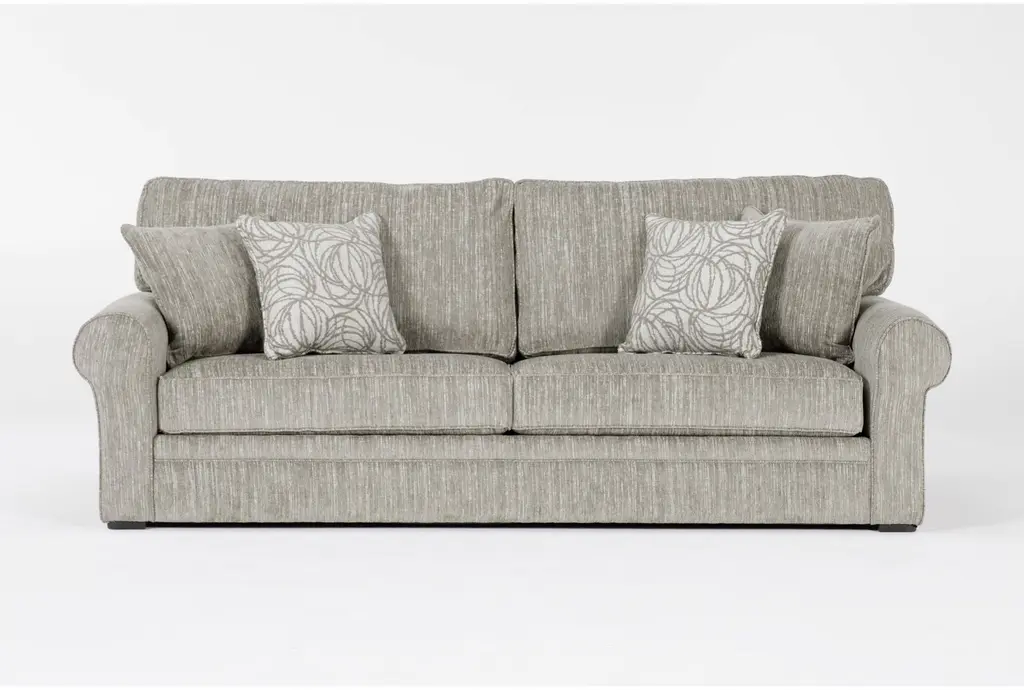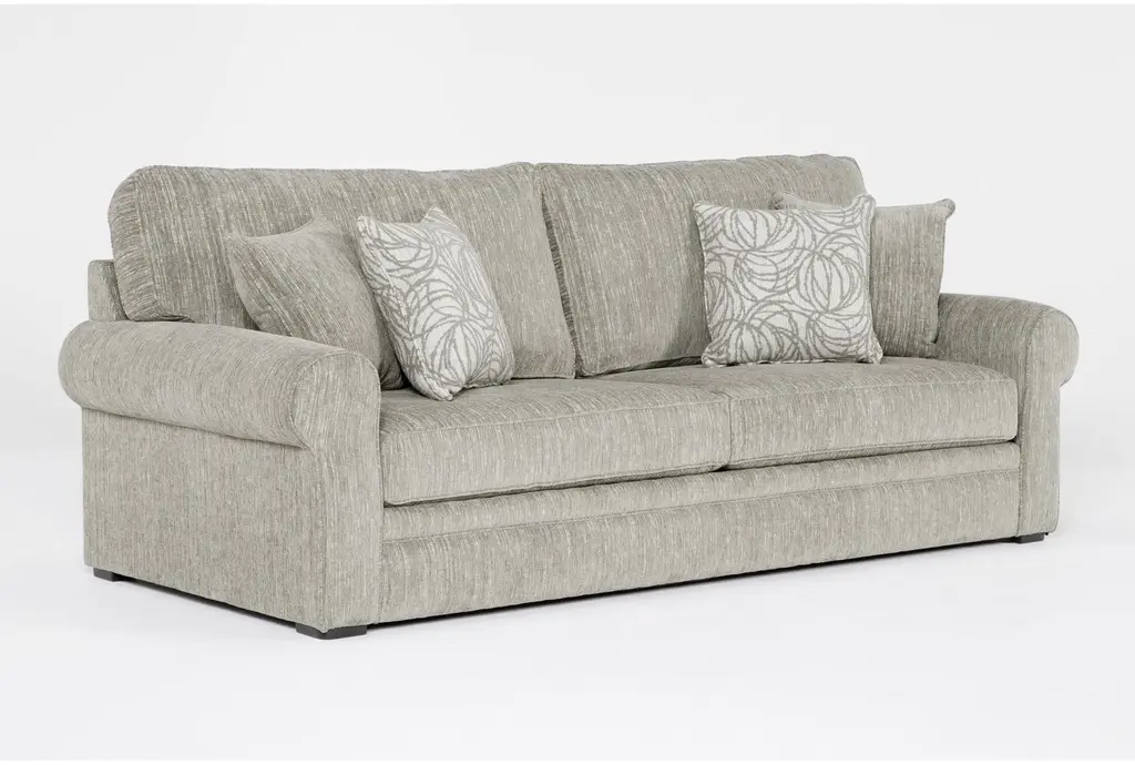 The timeless beauty of traditional style is on full display with our Carina collection. Designed and made exclusively by Living Spaces, the queen sleeper possesses the utmost quality and attention to detail. Classic roll arms set the stage for a graceful silhouette, which is elevated by luxuriously deep seating and 100% polyester chenille upholstery. Loose, reversible cushions ensure longevity, so you can enjoy lounging for years to come.