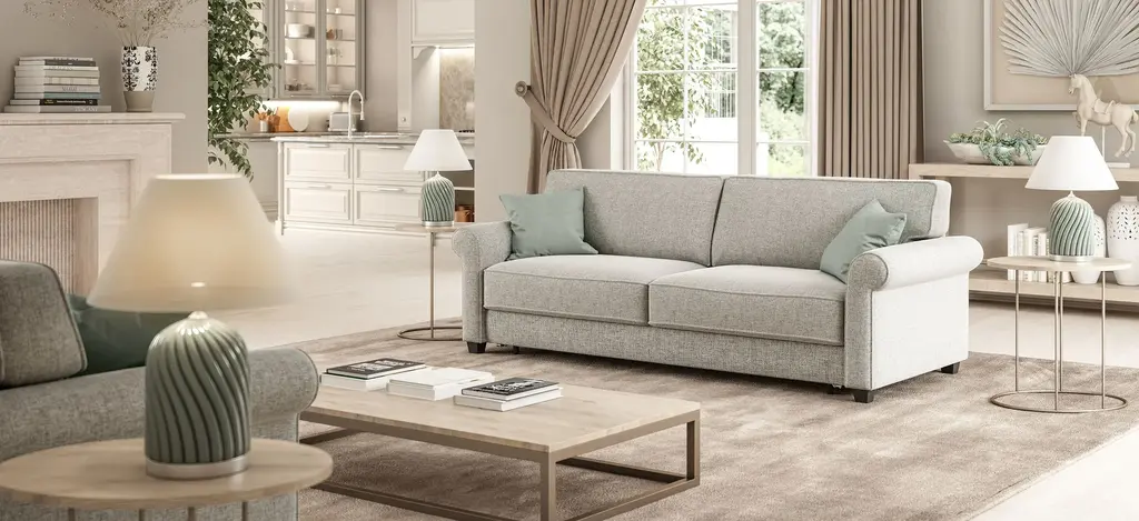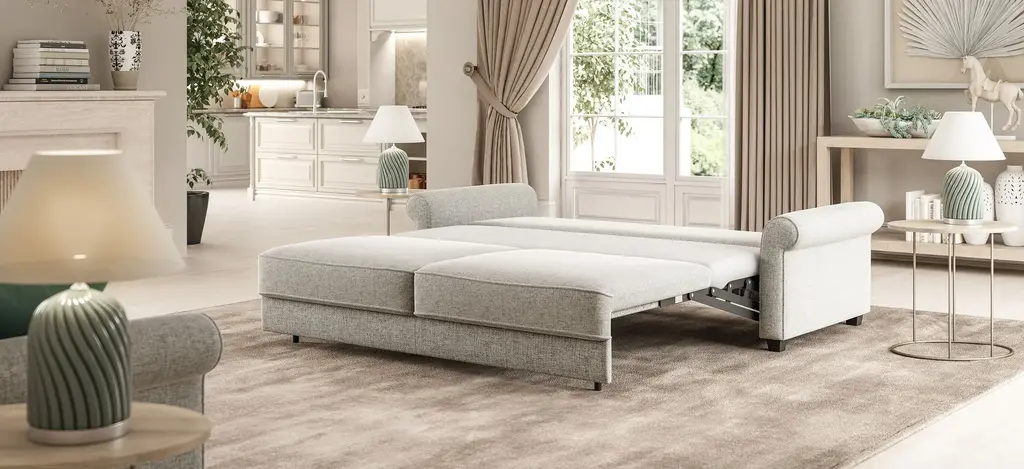 Every day sleeping and sitting are made easy with the Casey king sofa sleeper . The traditional rolled arm with welting matches any room. This sofa sleeper will offer more versatility for all needs in a room.